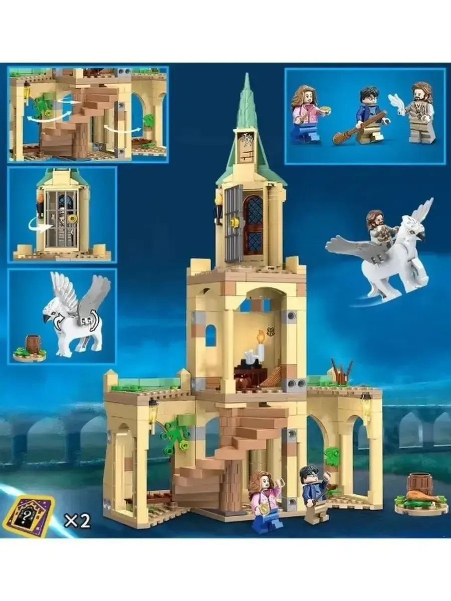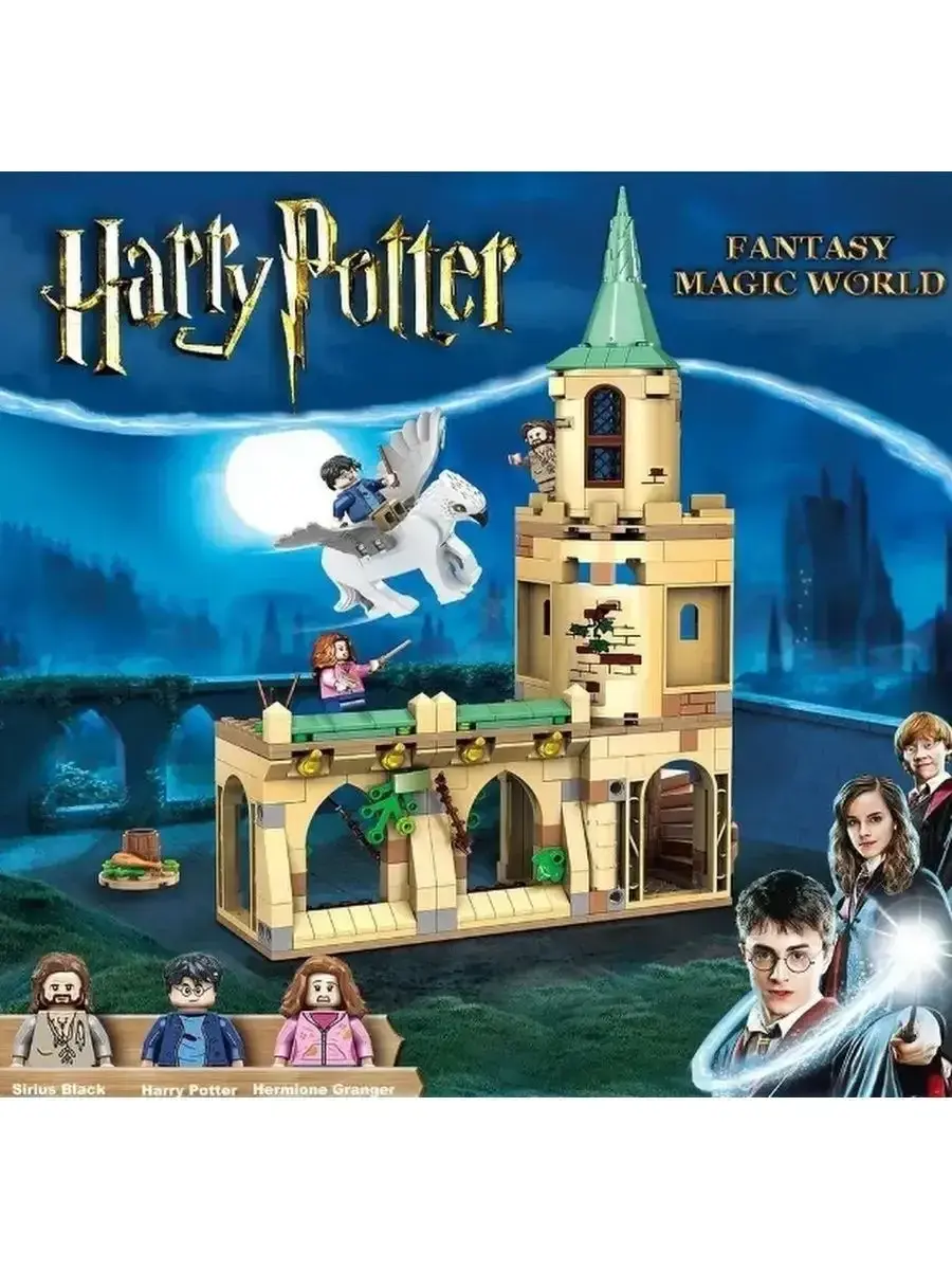 В комплект входят мини-фигурки Гарри Поттера, Сириуса Блэка и других персонажей, а также детали двора с воротами, стенами и магическими аксессуарами — волшебными палочками, цепями и элементами для создания динамичных сцен. Особое внимание уделено деталям архитектуры и атмосфере, передающей дух Хогвартса.