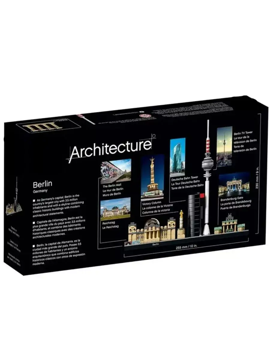 Один из красивейших городов Европы, переживший непростую историю, но сохранивший свое очарование, Берлин приглашает в гости путешественников всех возрастов. А если вам пока рано планировать самостоятельную поездку, увидеть город во всей красе позволит одноименный конструктор. Прямо перед вашим взором предстанет целый квартал немецкого мегаполиса с изящной телебашней, загадочным темным небоскребом и несколькими дворцами в классическом стиле, возраст которых исчисляется столетиями.Будущее сооружение обещает быть масштабным. Еще бы, ведь для его создания предусмотрено 289 деталей. Придется потрудиться! Но новый экспонат вашей архитектурной коллекции достоин того, чтобы потратить на его сборку несколько свободных вечеров. Зато потом его можно с гордостью демонстрировать друзьям, выслушивая их восторженные отзывы.