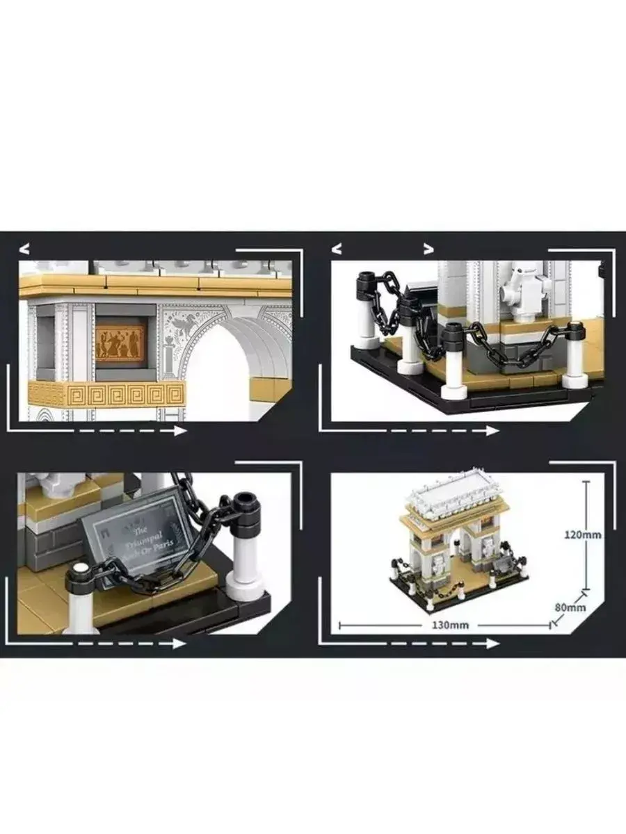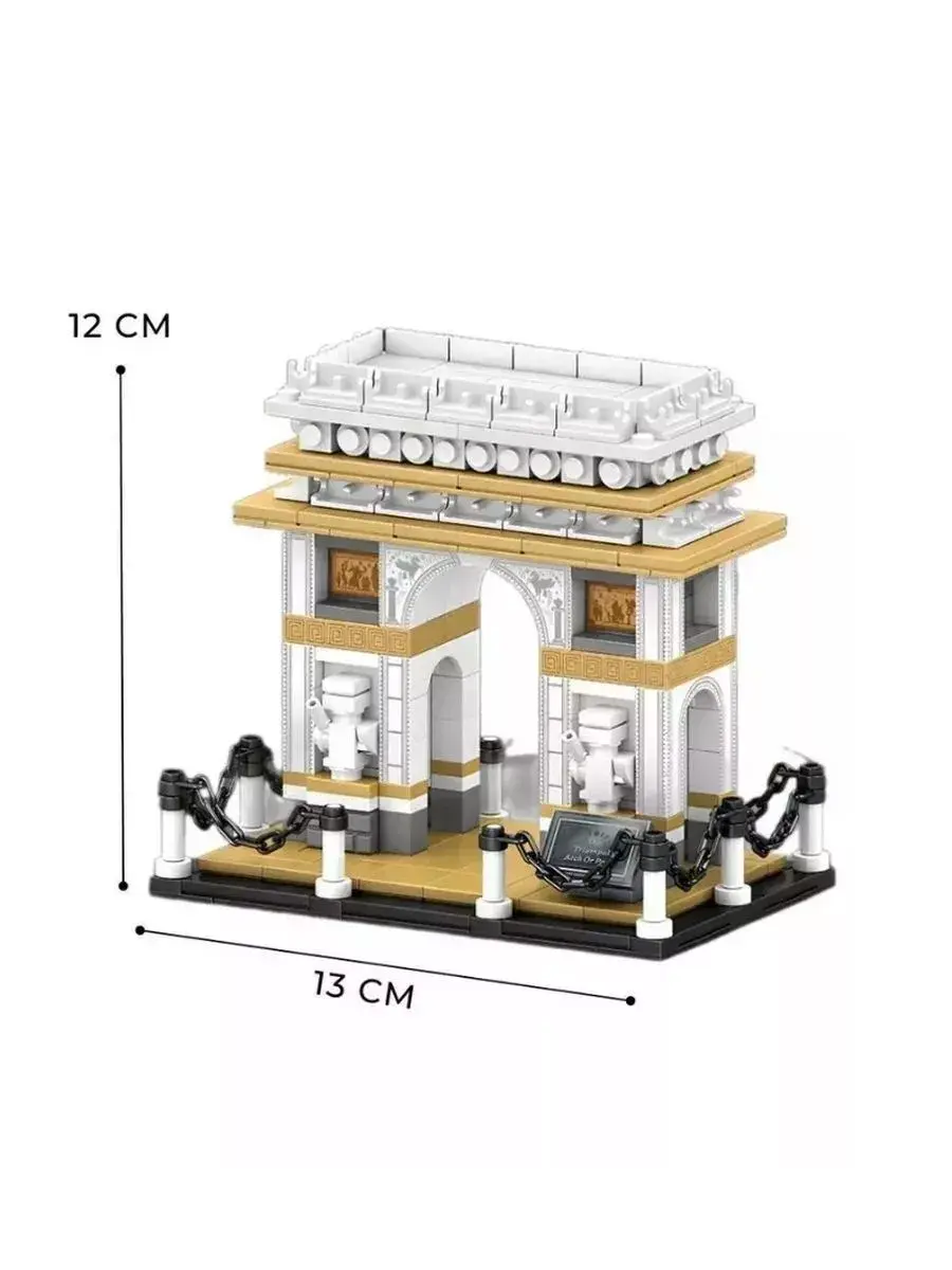 Набор Architecture "Париж-Триумфальная арка", состоящий из 516 деталей, порадует и надолго увлечет любителей сборки интересных моделей конструктора. Воссоздайте величественную архитектуру Парижа! Соберите из деталей набора модель Триумфальной арки, являющейся монументом в 8-м округе Парижа на площади Шарля де Голля. Арка возведена в 1806—1836 годах по проекту архитектора французского ампира Жана-Франсуа Шальгрена. Проект арки «в древнеримском стиле» был разработан по распоряжению Наполеона Бонапарта в ознаменование побед его «Великой армии»! Все детали модели, представленной в наборе, тщательно продуманы и выглядят реалистично! Размеры собранной арки: высота 12 см, ширина 13 см. Набор Архитектор "Триумфальная арка" - это оригинальный подарок, который оценят не только взрослые и подростки, но и многие дети! Доставит немало удовольствия, не только во время сборки и игры, но и как коллекционный набор для украшения выставочной полки. Подходит для игры дома, с друзьями, также можно взять с собой в дорогу. Играйте и получайте пользу! Конструктор из мелких элементов развивает мелкую моторику детских рук. Когда ребёнок соединяет детали, он учится делать точные, аккуратные движения. Также развивается логическое мышление и внимательность необходимые при собирании модели полностью. Набор Архитектура является классическим аналогом и полностью совместим с другими сериями известных брендов. Детали выполнены из высококачественного пластика, который абсолютно безопасен и не выделяет вредных веществ. В комплекте к набору прилагается инструкция.