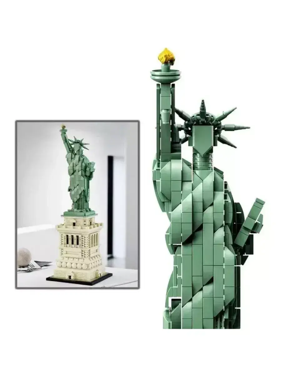 Постройте из кубиков модель одного из самых известных в мире национальных памятников — «Статую Свободы» . Статуя Свободы, расположенная в порту Нью-Йорка, возвышается над Островом свободы на высоту 93 метра, приветствуя морских путешественников со всего мира. Эта статуя является символом свободы. Она была передана народу Соединенных Штатов в качестве подарка от французского народа; официальная церемония передачи состоялась 28 октября 1886 года на глазах у многотысячной толпы. Детализированная модель отражает гармоничное сочетание архитектуры и скульптуры статуи, отличается проработанным пьедесталом со щитом, тщательной детализацией и балконами на колоннах. Статуя свободы облачена в развевающуюся робу, разбитые оковы и 7-лучевую корону. В левой руке она держит скрижаль, а в правой — золотой факел. Эта элегантная модель Architecture выполнена в аутентичной светло-зелёной с бежевым цветовой гамме и украшена декоративной пластиной.