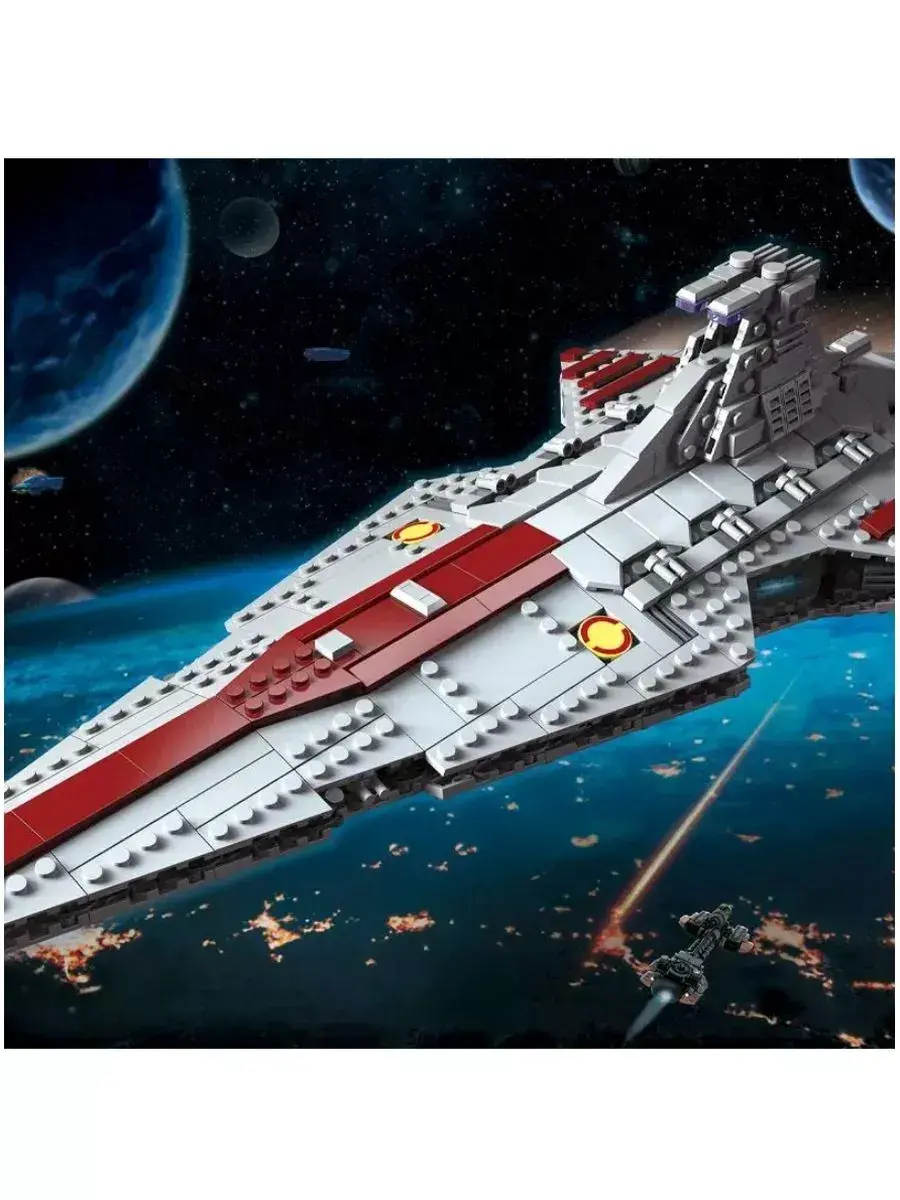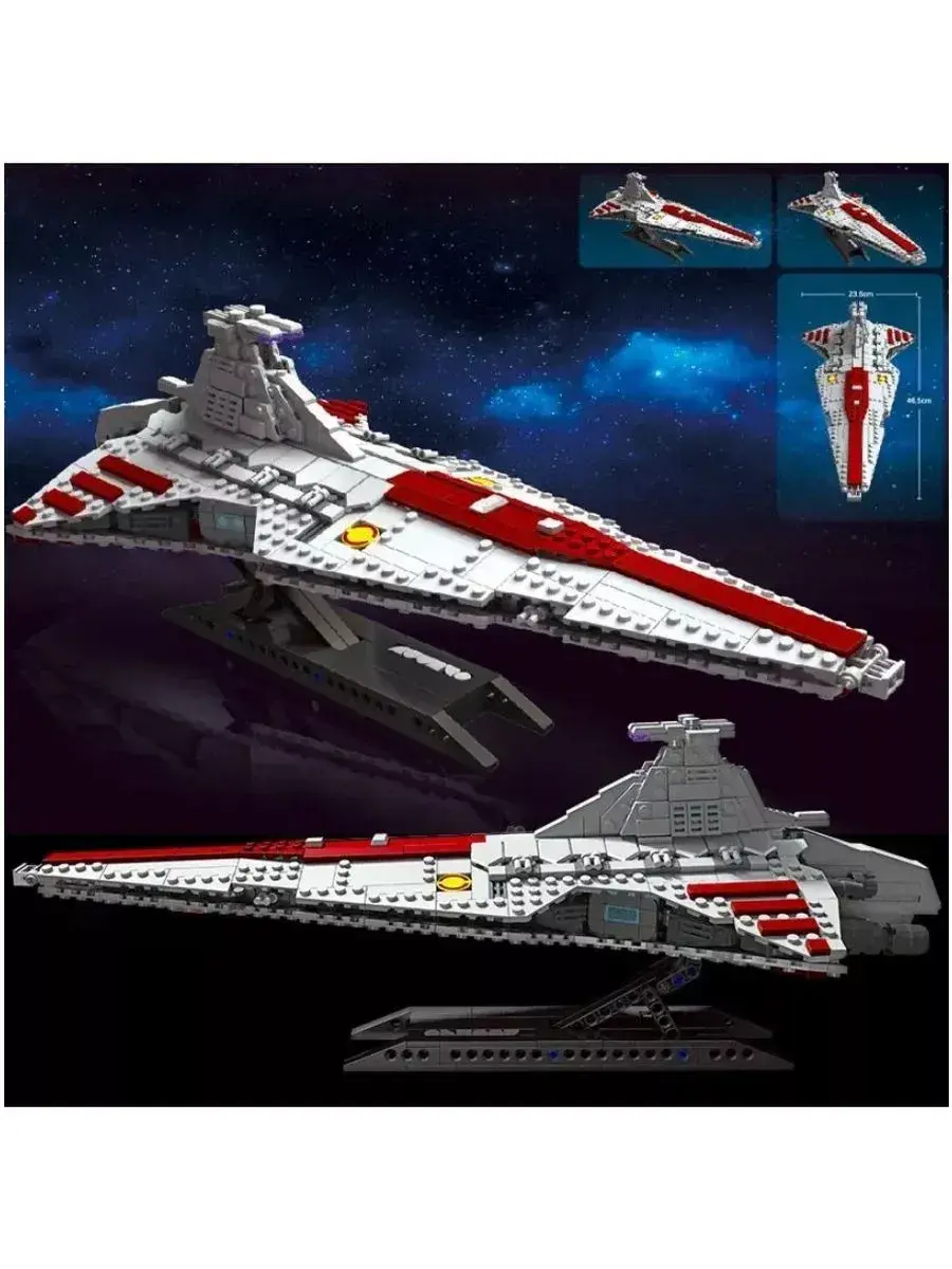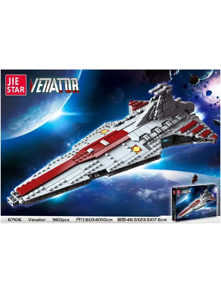 Набор Star Wars - Атакующий крейсер республиканцев класса Венатор, состоит из 960 деталей. Это — личный корабль Великого Канцлера Палпатина! Крейсер устрашает не только своим размером, но и содержанием! Собирая данный набор, ребенок может моделировать разнообразные игровые ситуации и погрузиться в мир серии Стар Варс. Детали конструкторов полностью взаимозаменяемы по мотивам знаменитой киносаги Звездные Войны. Подходит для игры дома, с друзьями, также можно взять с собой в дорогу. Играйте и получайте пользу! Конструктор из мелких элементов развивает мелкую моторику детских рук. Когда ребёнок соединяет детали, он учится делать точные, аккуратные движения. Также развивается мышление и внимательность необходимые при собирании модели полностью. Конструктор Стар варс является классическим аналогом и полностью совместим с другими сериями известных брендов. Детали выполнены из высококачественного пластика, который абсолютно безопасен и не выделяет вредных веществ. В комплекте к набору прилагается инструкция.