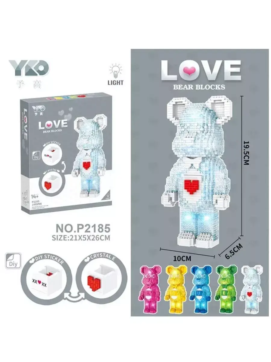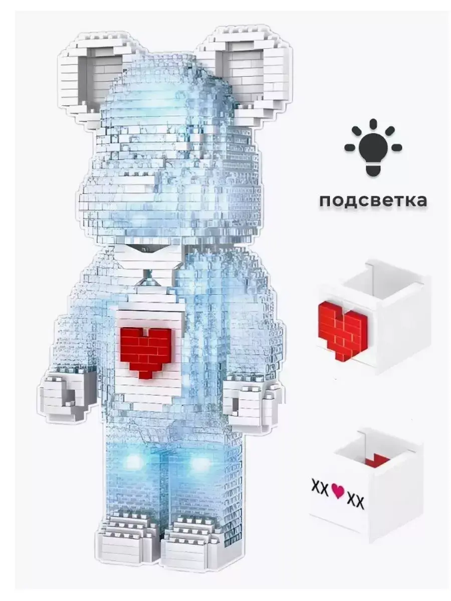 Коллекционный набор Bear Blocks "3D Мишка-шкатулка" с Лед подсветкой, состоящий из 1469 деталей, подарит невероятные эмоции и украсит любой дом! Беар Брикс - это серия коллекционных фигурок, имеющих характерный дизайн, представляющий собой упрощенного медвежонка. Беар-Брикс стали популярными среди коллекционеров и любителей дизайна. Они выпускаются в ограниченных сериях и часто оформляются в сотрудничестве с различными марками, художниками, дизайнерами и брендами. Соберите милого медвежонка с зеркальными вставками, светодиодами и с маленькой секретной шкатулкой, расположенной в верхней части модели. Шкатулку можно использовать для хранения маленьких драгоценностей, а также можно сделать с ее помощью приятный сюрприз близкому человеку, спрятав в нее небольшой подарок или записку!