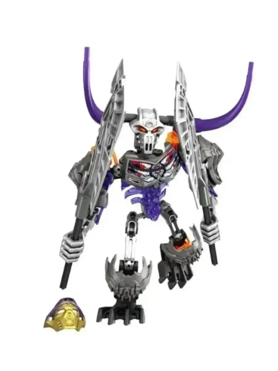 Фигура оснащена массивными когтями, мощной бронёй и устрашающей маской, подчёркивающей его разрушительную силу. Подвижные элементы позволяют создавать динамичные позы и разыгрывать эпичные битвы между добром и злом. Благодаря компактному размеру и простоте сборки, этот набор отлично подходит для детей и коллекционеров.