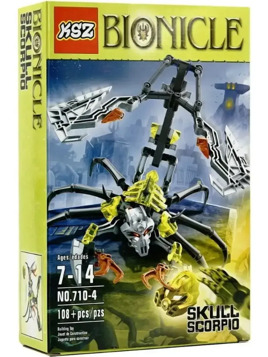 Конструктор "Бионикл Череп Скорпиона" (модель 710-4) — это захватывающий набор из 108 деталей, который перенесёт ребёнка в мрачный и загадочный мир древних существ и эпических сражений. Череп Скорпиона — устрашающий противник, обитатель пустынь и руин, готовый на всё, чтобы защитить свои владения от героев.