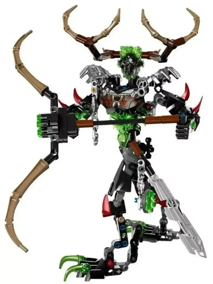 Умарак оснащён арбалетом, ловушками и устрашающей маской, придающей ему зловещий вид. Подвижные конечности и прочная конструкция позволяют разыгрывать динамичные сцены охоты и сражений. Благодаря детальной проработке и эффектному дизайну, фигура выглядит впечатляюще и отлично вписывается в коллекцию LEGO Bionicle.
