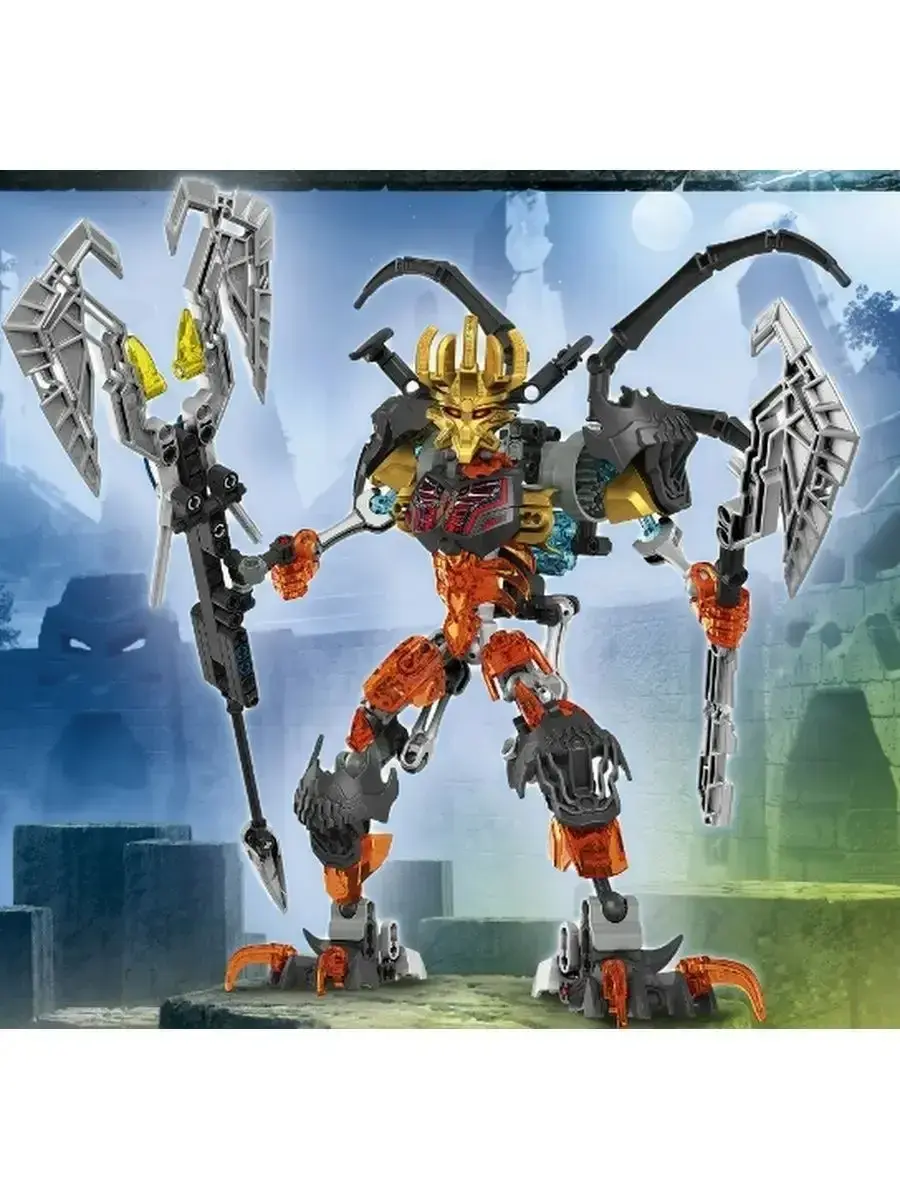 Модель разработана с высокой степенью детализации: у скелета подвижные конечности, крепкое вооружение и узнаваемый дизайн, вдохновлённый легендарной серией Бионикл. Элементы плотно соединяются между собой, обеспечивая прочную и устойчивую конструкцию, с которой удобно играть и ставить на полку.