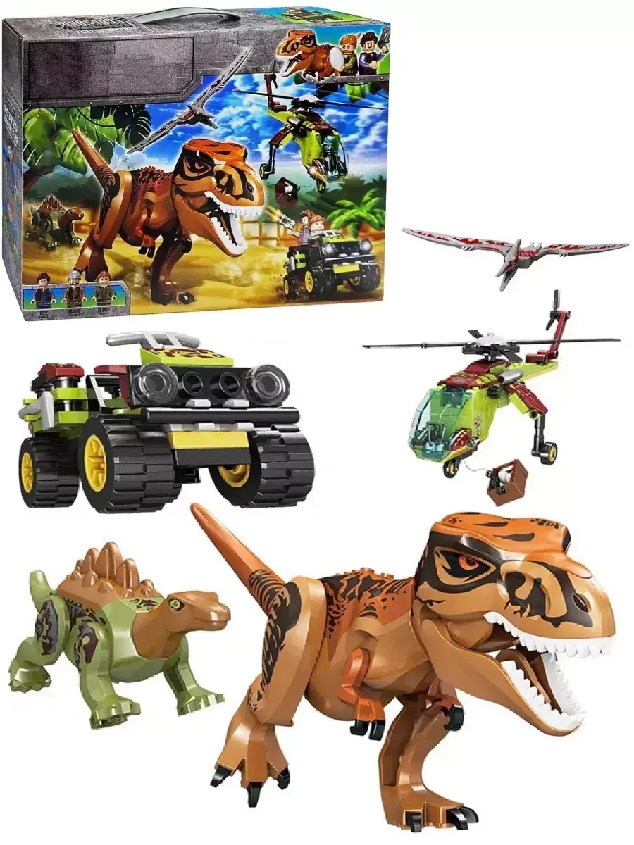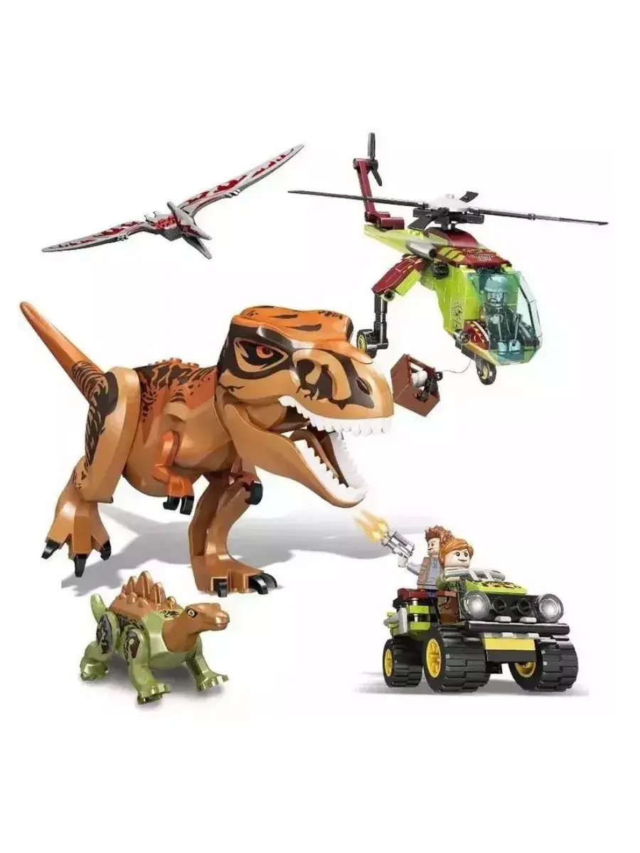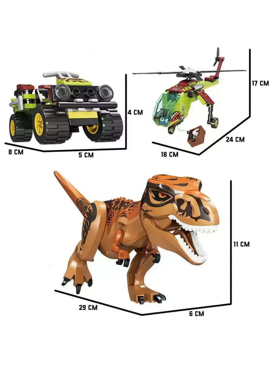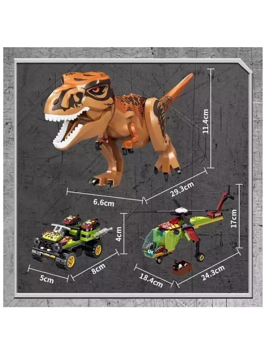 Конструктор из серии Парк Юрского периода Погоня Тиранозавра Ти-Рекса состоит из 319 деталей. Исследовательская группа из трех человек отправляется в джунгли, чтобы исследовать мир динозавров, и внезапно встречает тиранозавра, и здесь начинается настоящее приключение. Для удачной погони вам понадобятся вертолет, квадроцикл, три фигурки исследователей, три динозавра, в том числе большой тираннозавр REX.Смело покупайте этот детский конструктор и наслаждайтесь игрой вместе со своим ребенком. Этот яркий конструктор придётся по душе всем любителям занимательной сборки конструкторов. А это значит, что конструктор для мальчиков не оставит равнодушным никого. Пластиковый конструктор имеет красивую подарочную упаковку. Каждая деталь тщательно проработана, что делает игру реалистичнее.