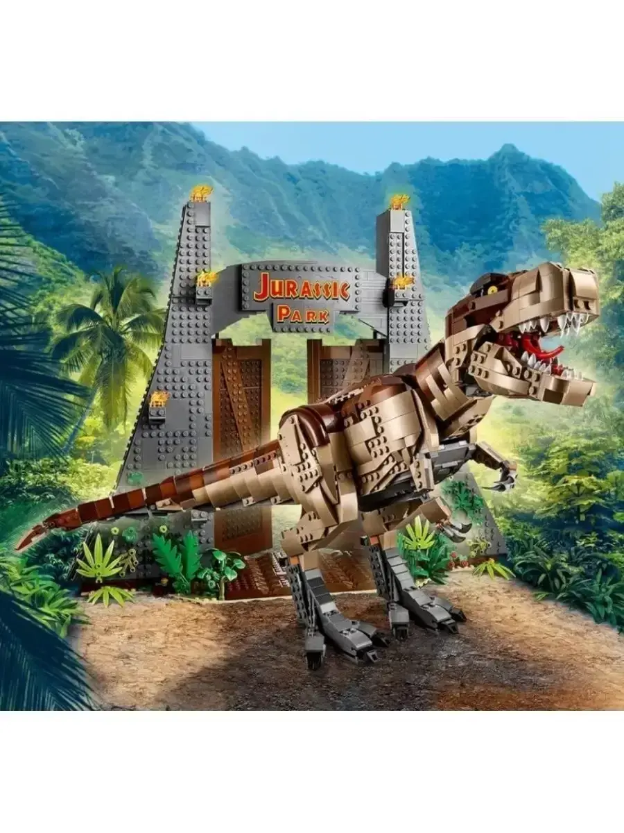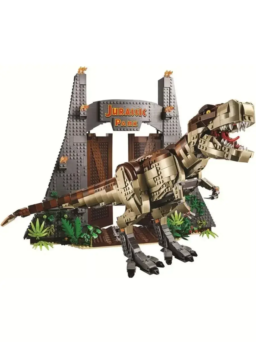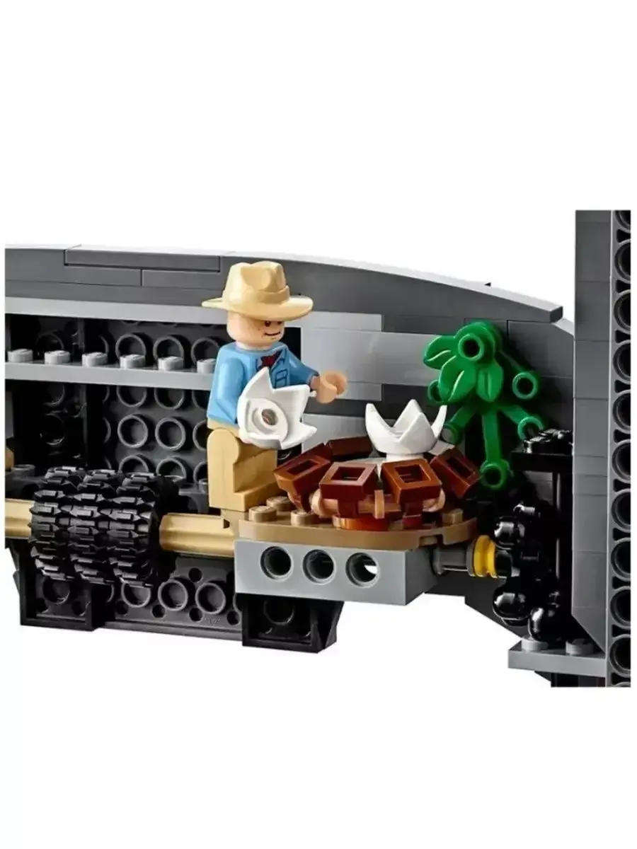 Собери из кубиков знаменитые ворота, ведущие в старый Парк Юрского периода, и огромного подвижного тираннозавра. Открывай ворота и отправляйся гулять по Парку Юрского периода. Воссоздавай сцены и декорации из знаменитого фильма - бункер Яна Малькольма, столовую Джона Хаммонда и командный пункт Рэя Арнольда! Набор наверняка придётся по душе поклонникам этой истории. В него входят 6 минифигурок: Элли Сэттлер, доктор Алан Грант, Деннис Недри и других персонажей, а также миниатюрный детеныш динозавра и подставка для минифигурок с описанием тираннозавра.