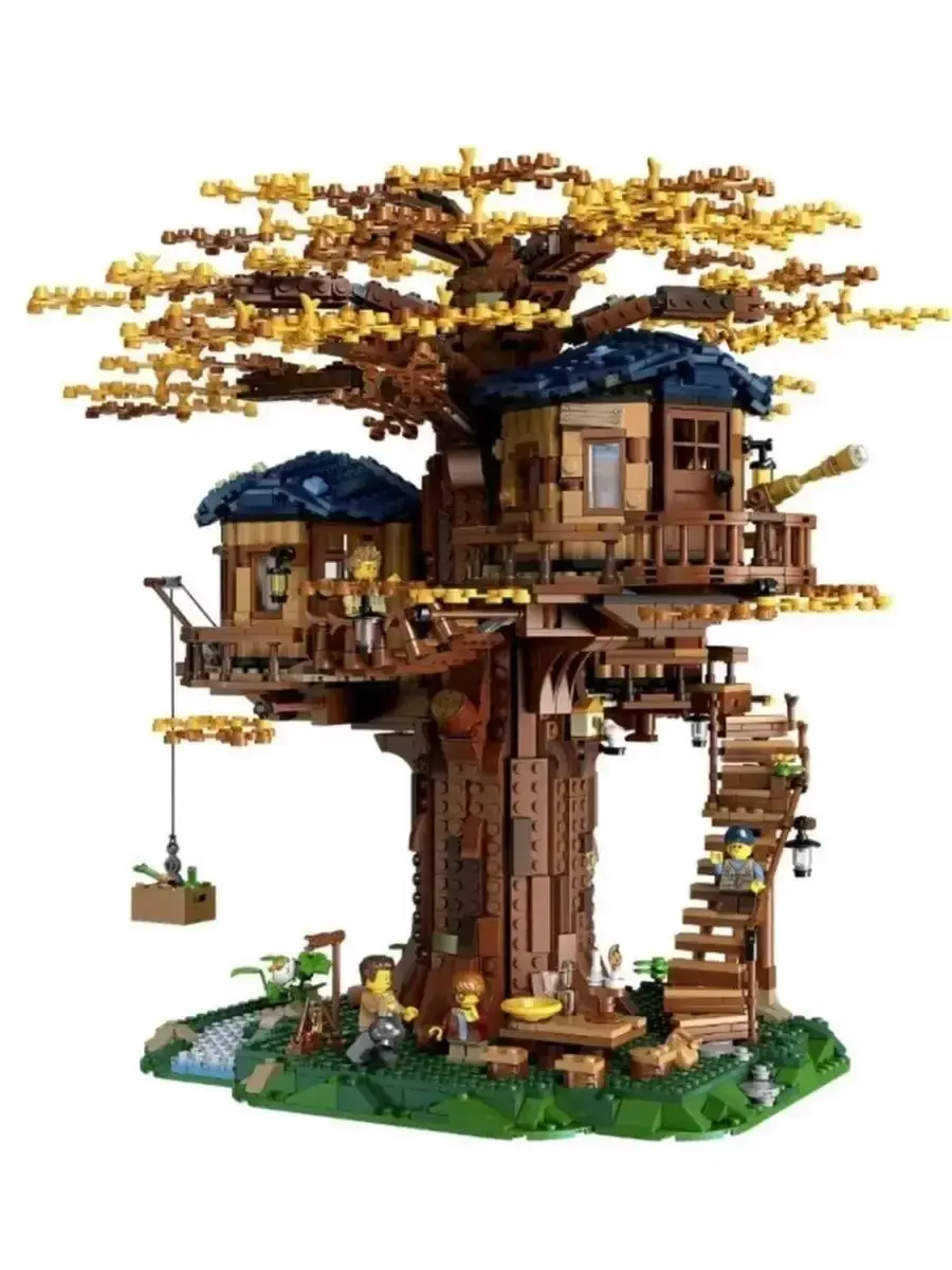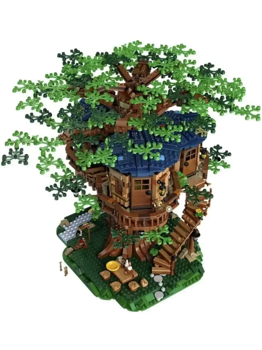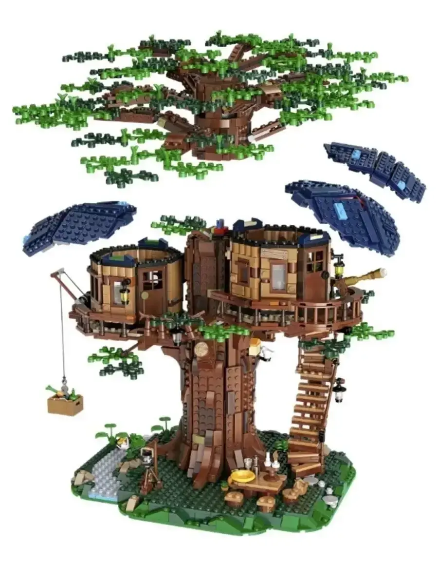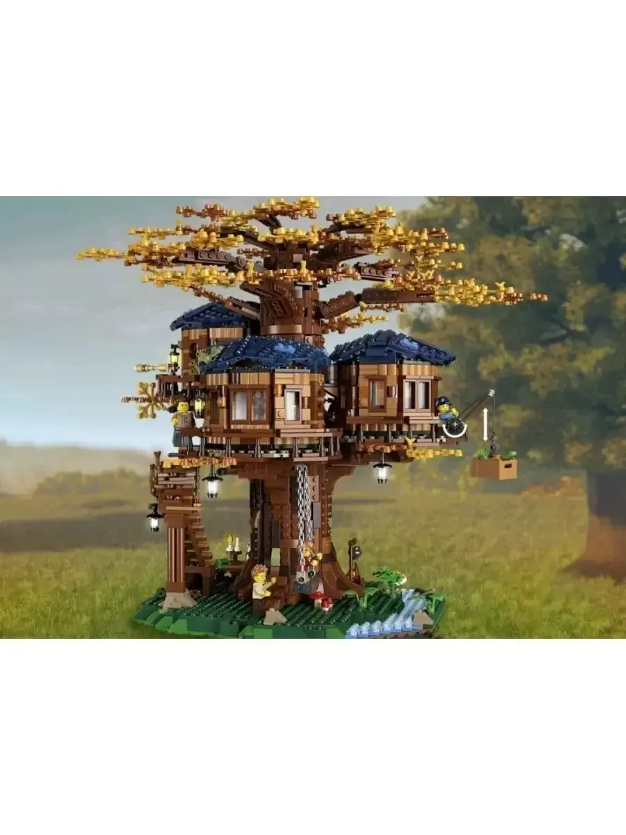 Конструктор Дом на дереве - станет отличным подарком для Вашего ребенка! Представленный комплектом из 1013 элементов, он создает фантастическую площадку для игры и фантазирования. Ключевой объект сборки высокое дерево с ветвями, усыпанными листвой зеленого цвета. Оно уходит глубоко корнями под землю, питаясь грунтовой водой и ловя капельки летнего дождя. Величие деревянистого растения выражается в мощи ствола и пышности кроны. Ландшафтным обрамлением этой жизненной формы выступают сочная растительность и водоем, дарящий дереву прохладу в жаркое время года.