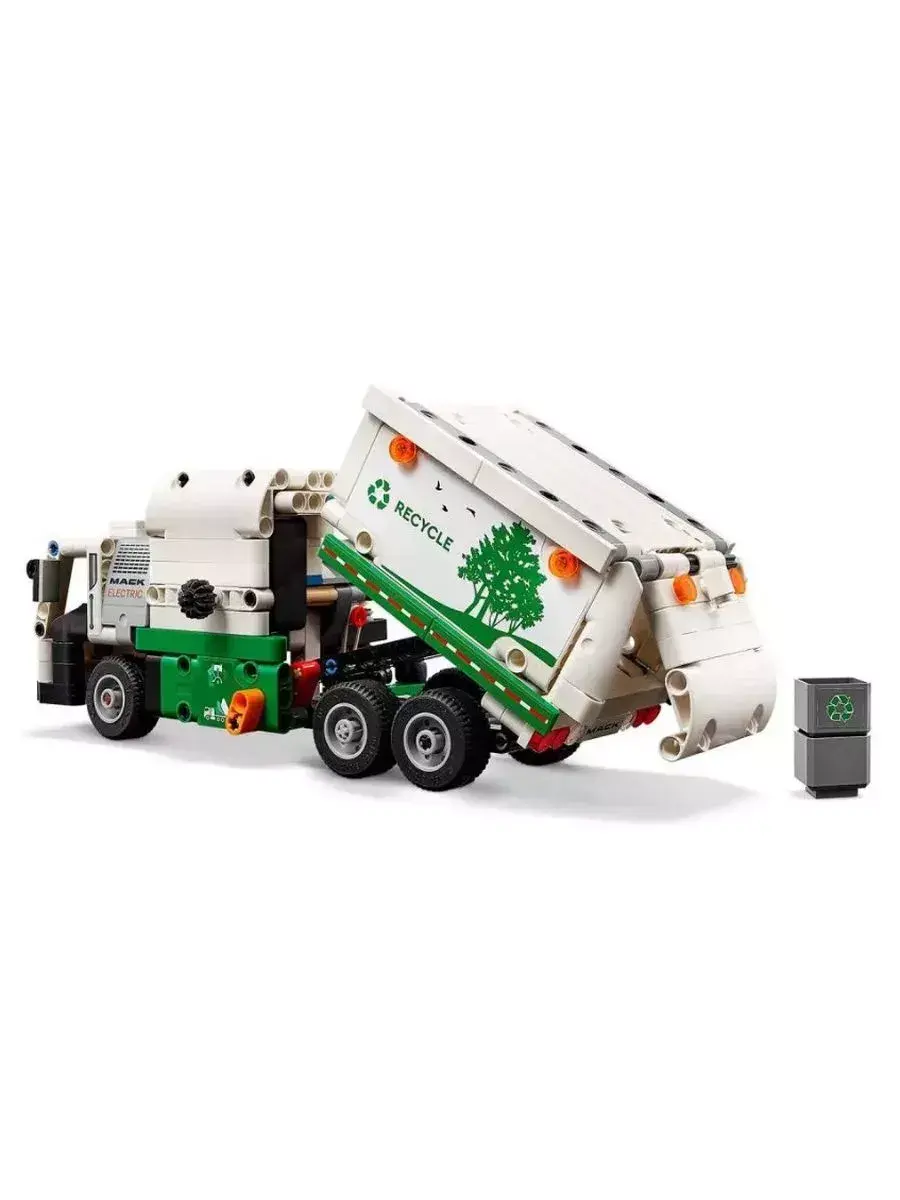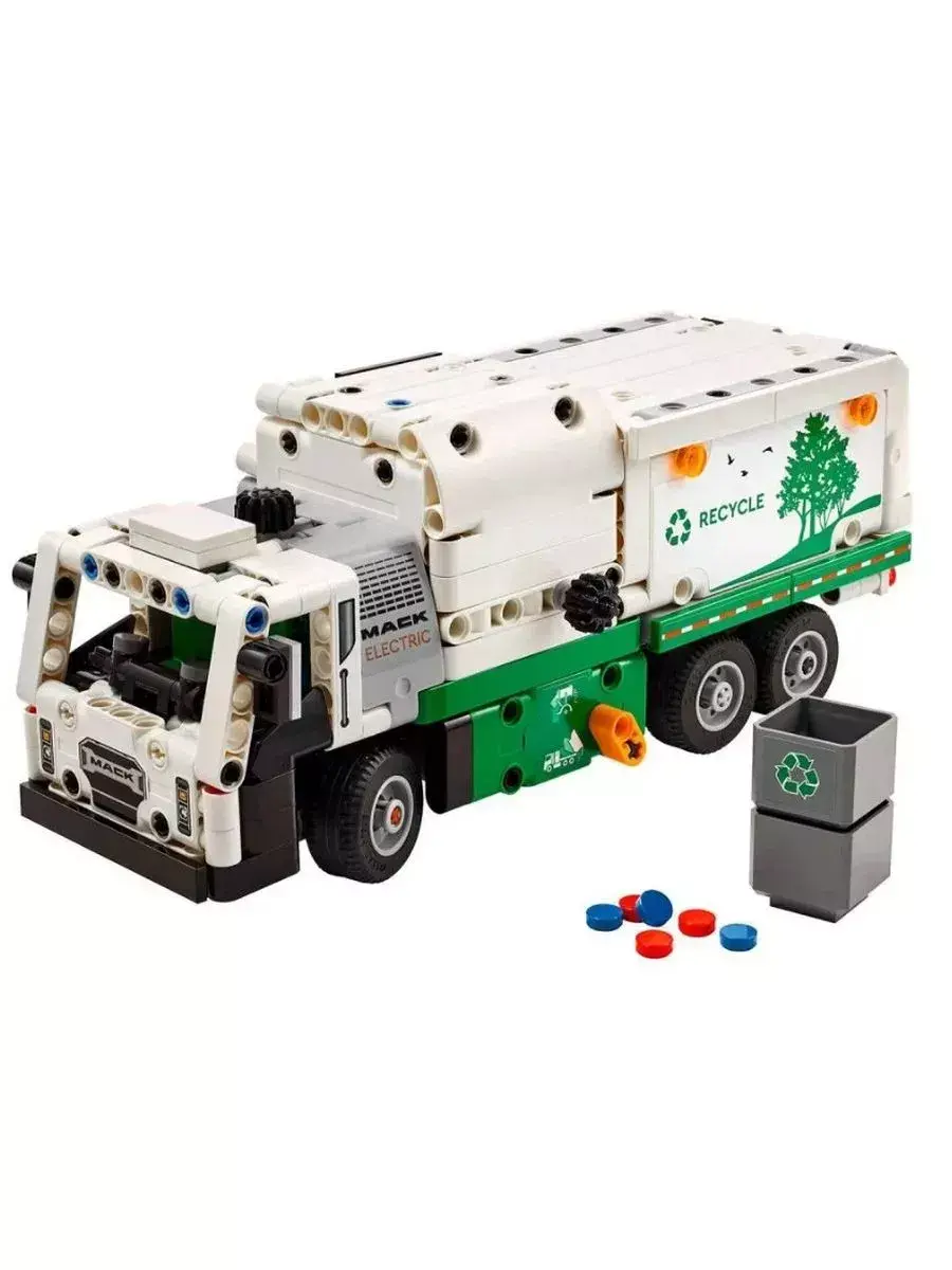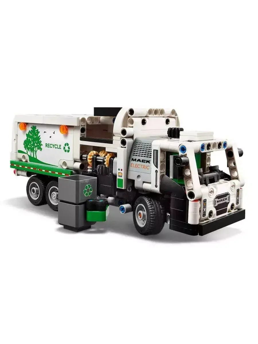 • Игрушечный грузовик для детей от 8 лет — электрический мусоровоз Mack LR для мальчиков и девочек оснащен боковым погрузчиком, позволяющим захватывать, поднимать и опрокидывать мусорные баки. • Вдохновлен настоящим грузовиком — эта модель основана на реальном электрическом мусоровозе Mack и имеет реалистичное движение для творческой игры. • Возьмите, поднимите и опрокиньте — дети могут разыгрывать истории об игрушечных грузовиках для переработки отходов, устанавливая грузовик на место, а затем используя боковой погрузчик, чтобы собрать мусор и опрокинуть его в автомобиль перед разгрузкой. • Рулевое управление и открытие дверей — двери открываются, показывая кабину водителя, и дети могут использовать зубчатый элемент наверху кабины, чтобы направить грузовик в нужное положение. • Размеры: набор из 500 предметов позволяет собрать грузовик высотой 9 см, длиной 23 см и шириной 8 см.