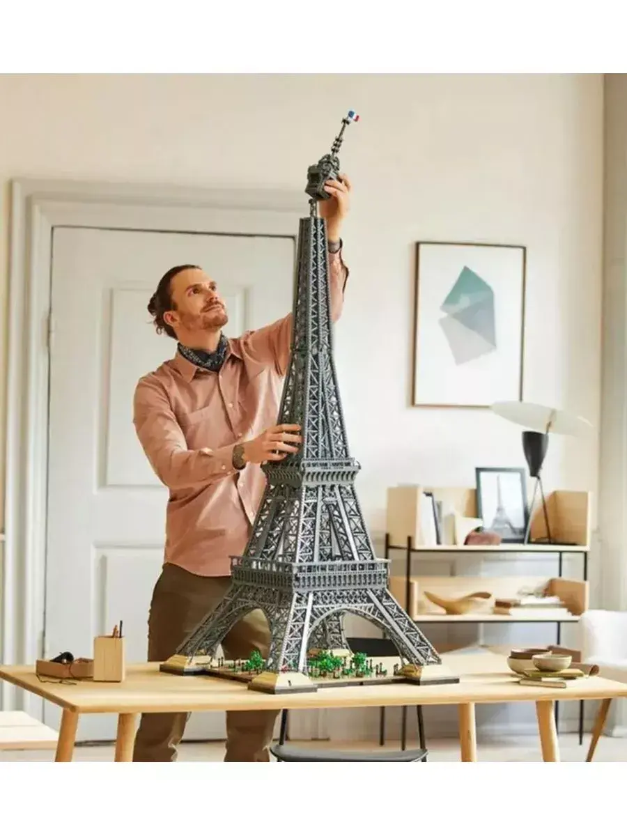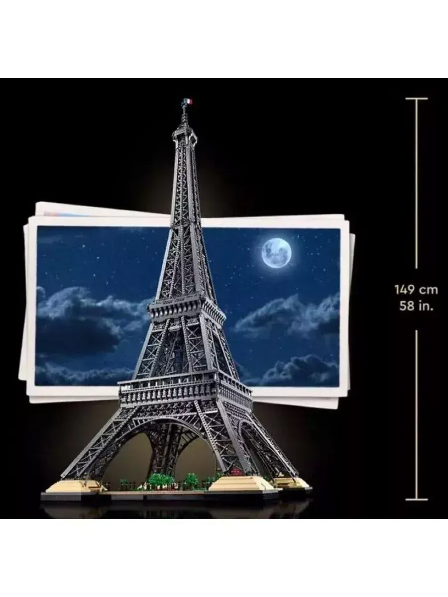 Это не только один из самых высоких наборов, но и один из самых больших по количеству элементов — 10 001 деталь для захватывающего опыта от начала до конца. Этот набор также лучшая идея подарка любителям путешествий или истории. Невероятная сборка — приготовьтесь побить рекорды с этой моделью Эйфелевой башни. 149 см в высоту и 10 001 деталь! Это предмет коллекционирования, которым можно дорожить вечно. Воссоздайте историю — вы соберете эту модель Эйфелевой башни из 4 частей, что напоминает конструкцию оригинального памятника, и изучите новые методы строительства. Точная геометрия — эта модель с обзором на 360° точно повторяет декор реальной Эйфелевой башни с арками, опорами, поперечными распорками, перилами и даже достоверным видом, если смотреть снизу вверх. Подготовьте сцену — не спешите, создайте Эспланаду, где детали уровня земли включают парижские фонарные столбы, скамейки, деревья и кустарники. Поднимитесь на башню — заберитесь ввысь, собрав 4 постамента, 3 смотровые площадки, лифты с кабелями, личный кабинет Гюстава Эйфеля наверху и телебашню. Отдельные детали для транспортировки — эта модель Эйфелевой башни делится на 4 части и оснащена ручками для переноски, чтобы вы могли перемещать и демонстрировать свое достояние. Размеры — модель Эйфелева башня имеет размеры более 149 см в высоту, 57 см в ширину и 57 см в глубину, что делает ее одной из самых больших моделей.