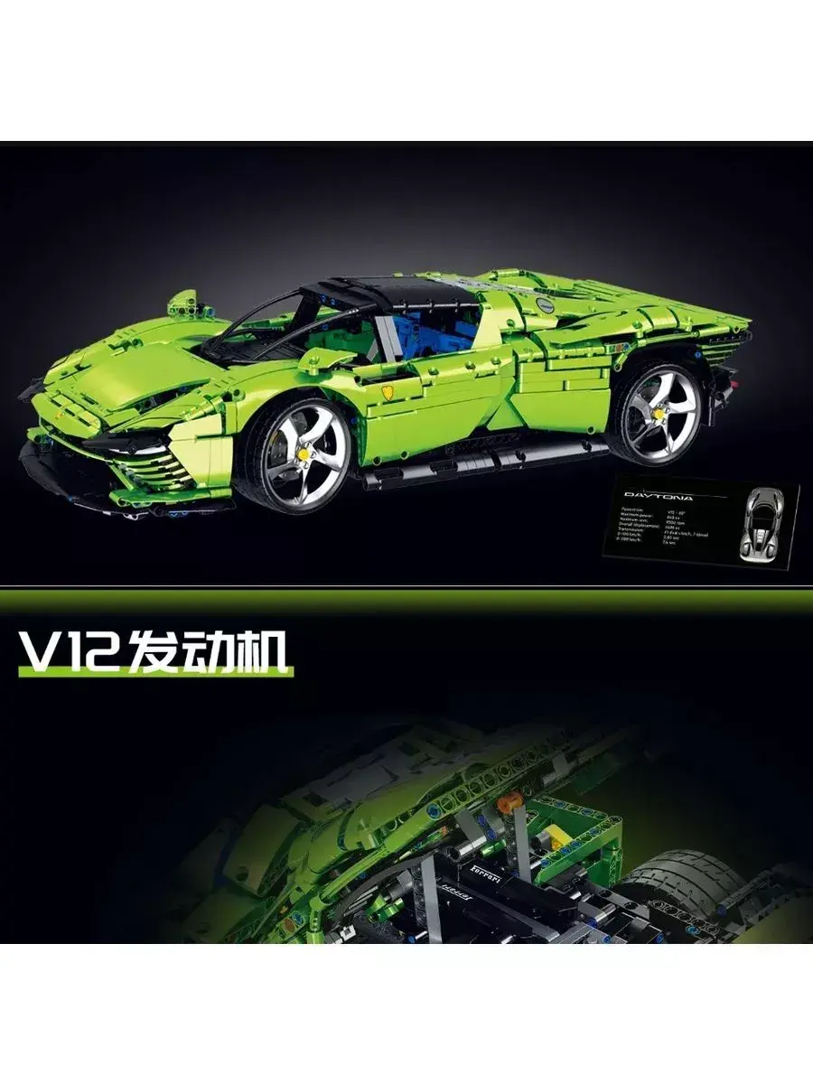 Конструктор «Феррари Дайтона» из 3778 деталей принадлежит к разделу «Техник Спорткары», к категории «Машины Ferrari». Суперкар создан для поклонников, мечтающих собрать собственными руками легенду из мира автоспорта. Руль с подрулевыми лепестками, 8-ступеньчатая коробка передач, двигатель V12 с подвижными поршнями. Аутентичный дизайн в красном цвете, поднимающиеся дверцы-бабочки, а съемная крыша превращает автомобиль в targa. К большому набору прилагается подробная инструкция, позволяя провести грамотную поэтапную сборку. Войдите в зону полной концентрации, воссоздавая черты модели Ferrari Daytona SP3 в классическом красном цвете с хромированными дисками. Затем поместите ее в зону показа, чтобы полюбоваться культовой задней частью и изогнутыми линиями, которые делают эту модель в масштабе 1:8 такой особенной. Модель создана специально для взрослых фанатов. Эти усовершенствованные наборы для сборки моделей, посвященных некоторым из самых эксклюзивных автомобилей в мире, станут лучшим подарком для любителей машин.