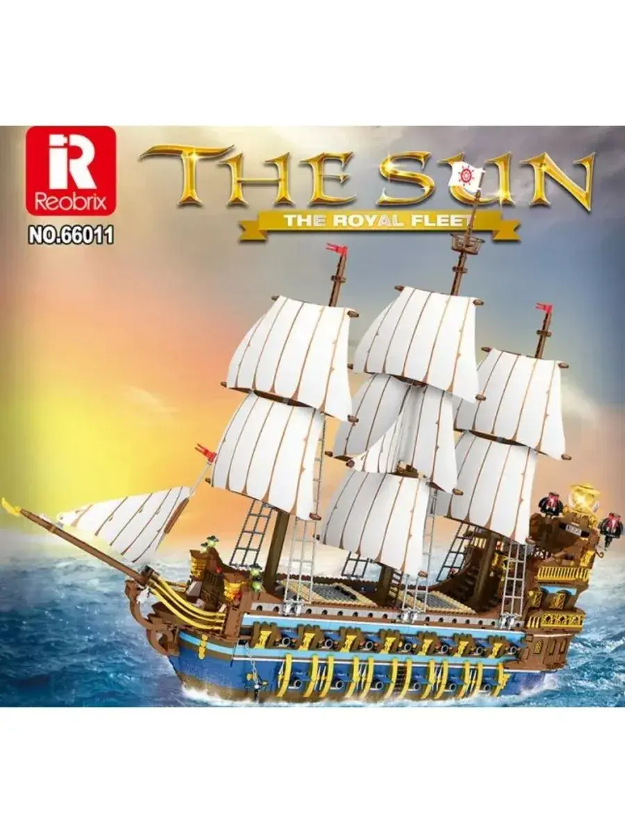 Этот великолепный Корабль из набора 66011 является гордостью флота. Способный выдержать длительное плавание корабль предназначен для перевозки особо важных придворных вельмож и генералов. Его команда всегда готова вступить в схватку с пиратскими кораблями, которые посмеют напасть на этот флагман королевского флота. По бокам у корабля размещаются амбразуры с мощными пушками для ведения дальнего боя. Особо эффектно смотрится чучело акулы, расположенное на бушприте судна. Размера макета корабля после сборки достаточно внушителен. Длина - 87 см.