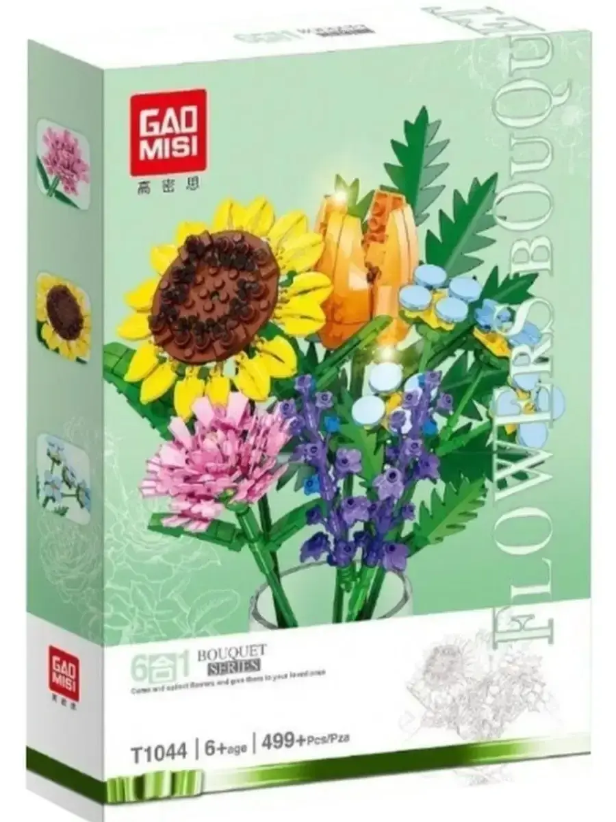Конструктор из серии Букеты состоит из 499 деталей. Представляем вам уникальный конструктор "Создай свой букет". Создайте необыкновенной красоты букет, который не завянет и будет всегда радовать глаз. Он отлично впишется в любой интерьер и добавит ему летних красок. Из деталей набора можно собрать 6 различных цветов, которые отлично будут смотреться вместе и украсят любое помещение.