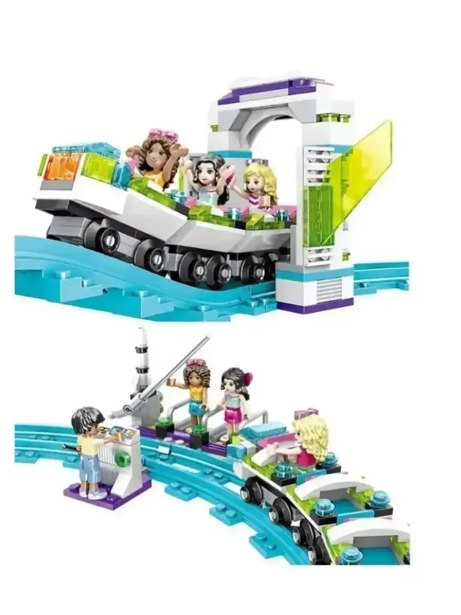 Конструктор «Френдс: Американские горки» (1139 деталей, артикул 3041) — это захватывающий и яркий игровой набор, который перенесёт детей в сердце парка развлечений. Этот аттракцион подарит море эмоций, адреналина и веселья, а также даст возможность своими руками построить настоящие американские горки с вагончиками, световыми эффектами и множеством дополнительных игровых зон.