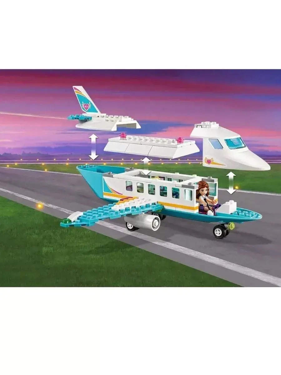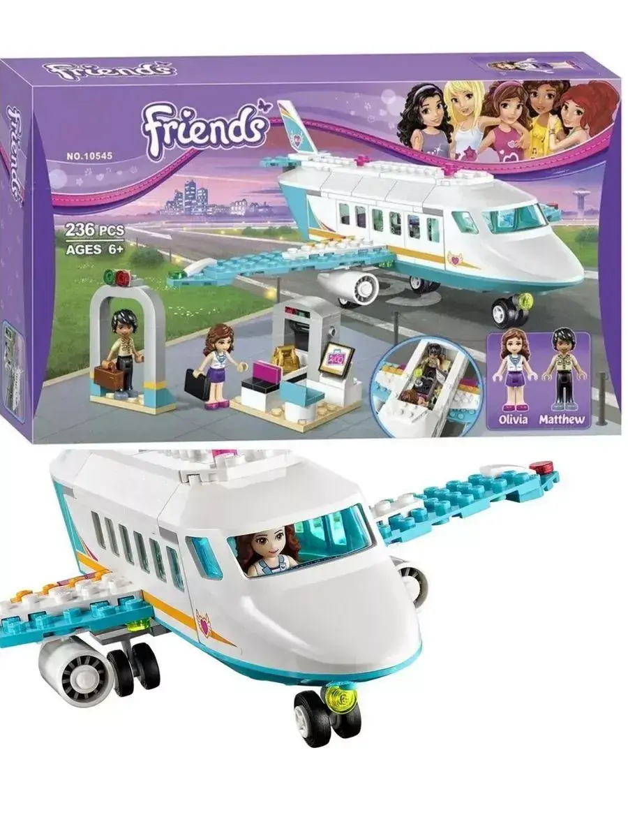 В комплект входят яркие и качественные детали для создания реалистичного самолёта с кабиной пилота, удобным салоном и крыльями. Модель оснащена подвижными элементами, что позволяет имитировать полёт и создавать интересные игровые сцены. В набор также входят фигурки героинь серии «Френдс», которые готовы отправиться в новое приключение и исследовать мир с высоты птичьего полёта.
