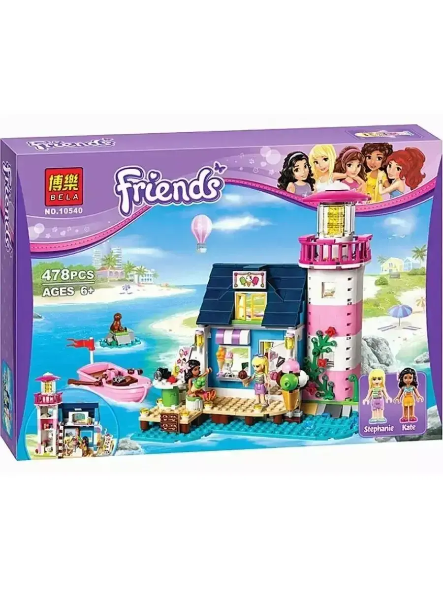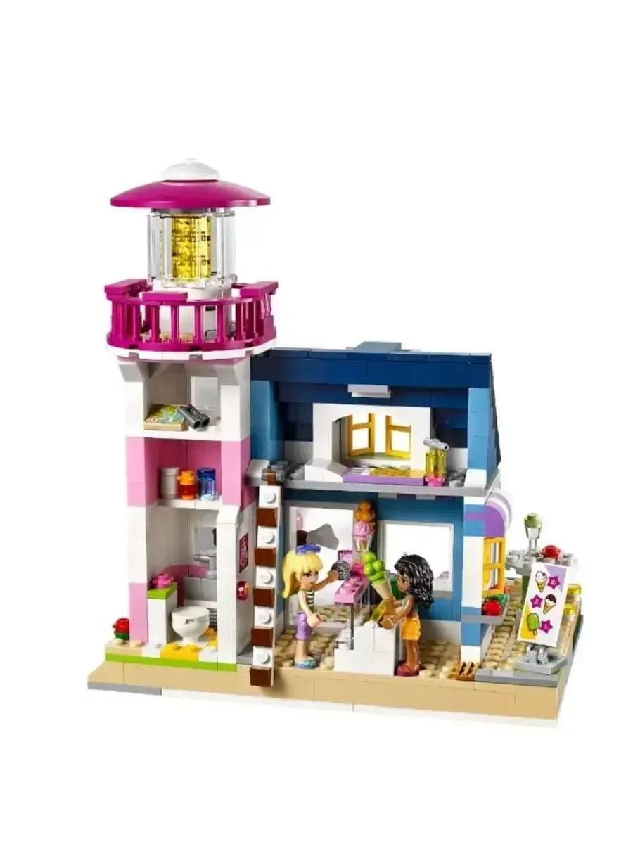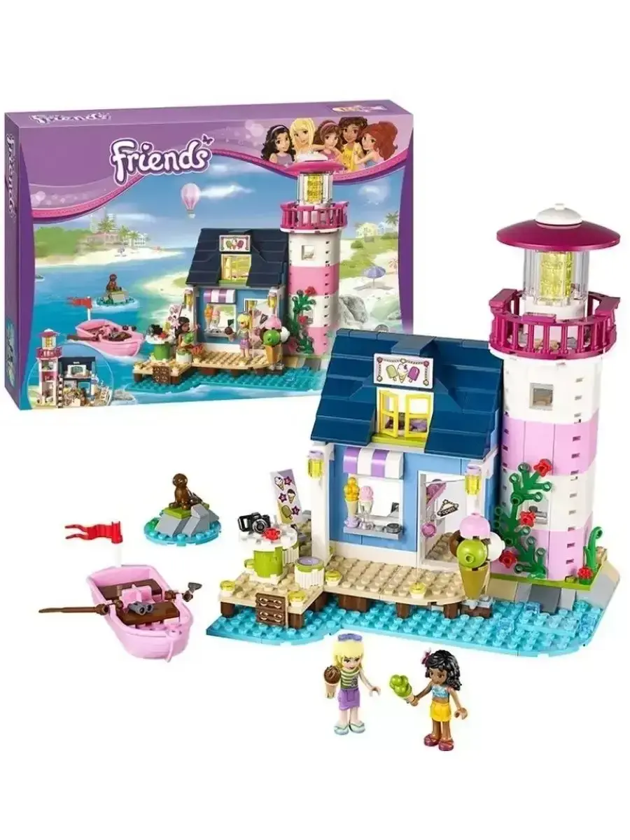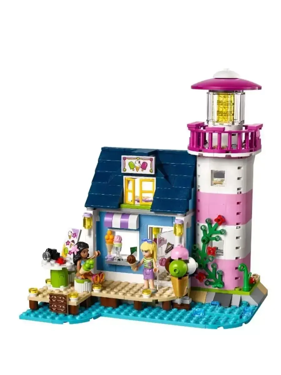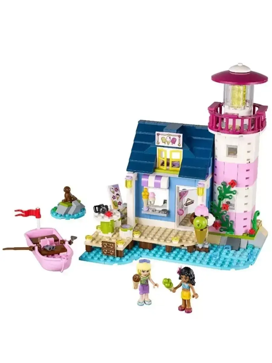В комплект входят разнообразные детали для создания маяка с яркими окнами, обзорной площадкой, лестницей и причалом. Благодаря продуманному дизайну модель выглядит реалистично и привлекательно, создавая атмосферу настоящих морских приключений. В набор также входят фигурки героинь серии «Френдс», которые помогут сделать игру ещё интереснее — дети смогут разыгрывать истории о спасении, путешествиях и дружбе.