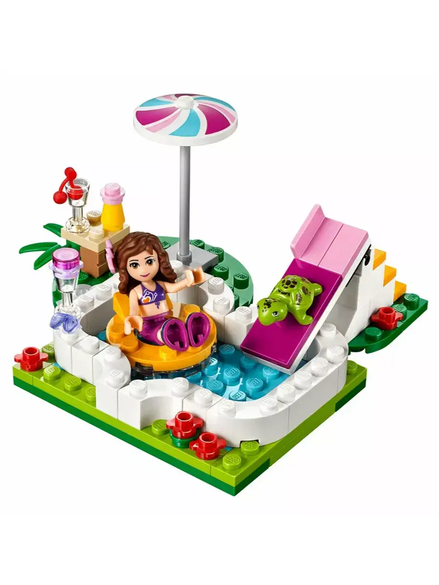 Когда вы соберете модель маленького бассейна Оливии, вы сможете придумать различные сценарии игры и развлечений для героев "Френдс". Вы сможете заняться плаванием, солнечными ваннами, играми в водные спорты и многое другое. Ваша фантазия будет единственным ограничением!