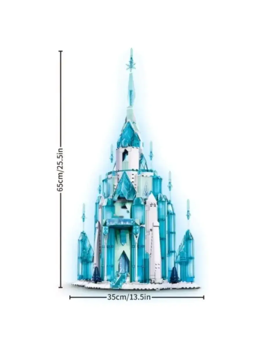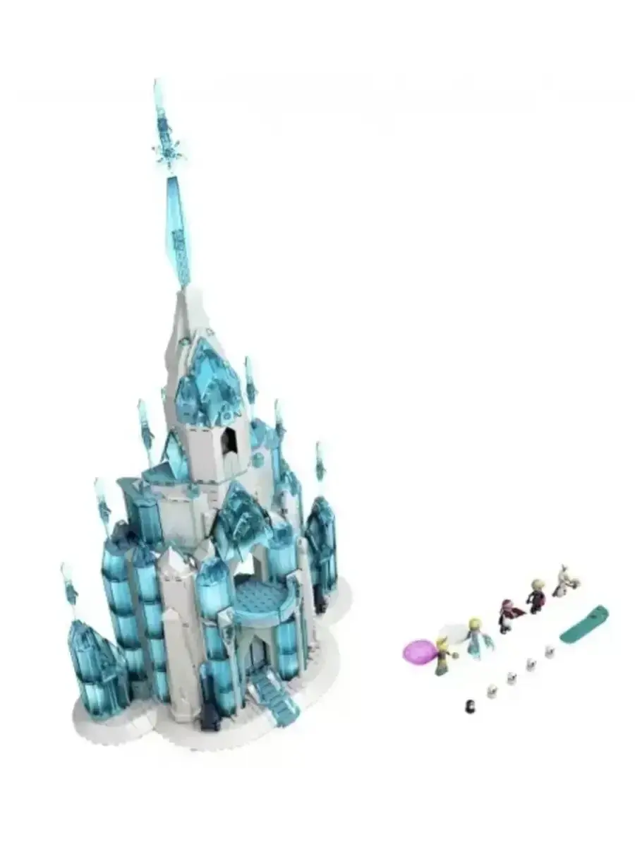 Великолепный ледяной дворец поражает воображение сложностью конструкции и изяществом оформления помещений. Снаружи он весь выполнен словно из ледяных стрел, стремящихся в небеса. Внутри он будто наполнен стеклом и воздухом. При входе гостей встречает уникальный ледяной фонтан. Замок многоуровневый и две фигурные лестницы проведут вас наверх. Затем можно выйти на балкон и осмотреть окрестности. Посетите восхитительный тронный зал, спальню с шикарной кроватью и гардеробную, наполненную множеством прекрасных нарядов. Если вы будете внимательны, то сможете увидеть макет Эренделла и множество других удивительных вещей. Размеры ледяного замка в собранном виде: 65Х35Х19 см. В наборе есть минифигурки Эльзы, Анны, Кристоффа, Олафа, фигурки снеговиков и пингвина, сани и множество забавных аксессуаров.