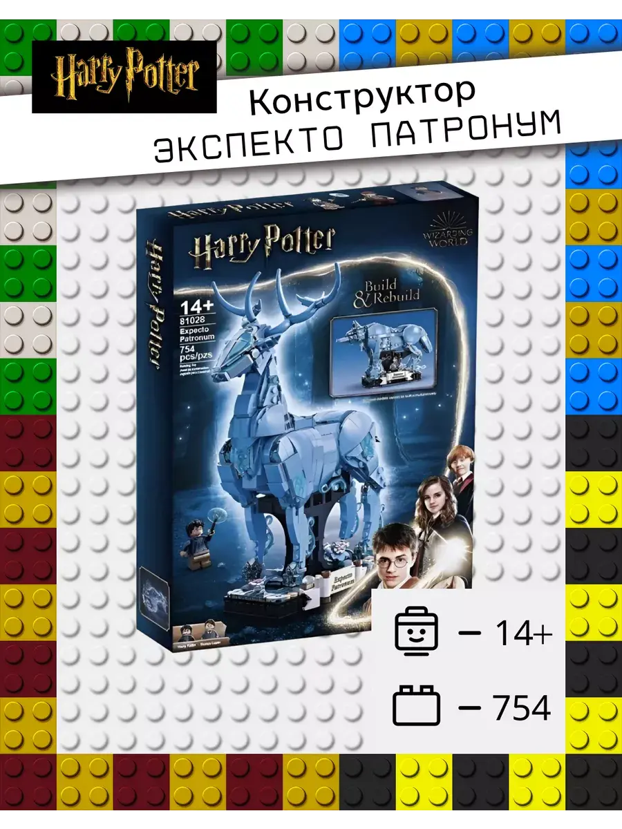 Конструктор Гарри Поттер Экспекто Патронум - это захватывающий набор для детей от 7 лет и старше, который позволяет создавать и восстанавливать защиту от дементоров. В комплекте вы найдете 754 детали, из которых можно собрать либо Патронуса Гарри Поттера, либо Патронуса-волка профессора Ремуса Люпина.