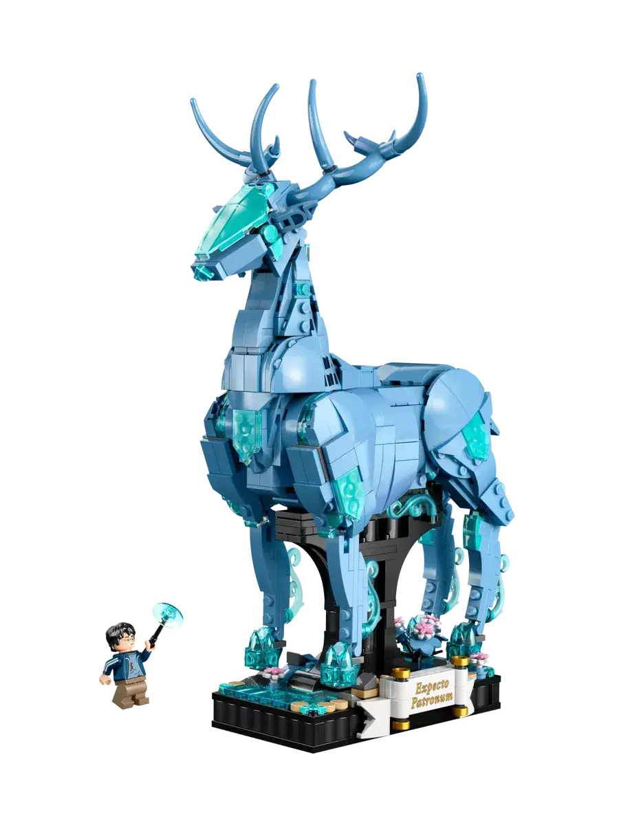 Каждый вариант модели имеет полупрозрачные голубые элементы для магического эффекта, подвижные ноги и встроенную подставку с декоративными элементами и местом для минифигурки. Сборная модель Патронуса в виде оленя имеет размеры 29 см в высоту, 22 см в длину и 11 см в ширину.