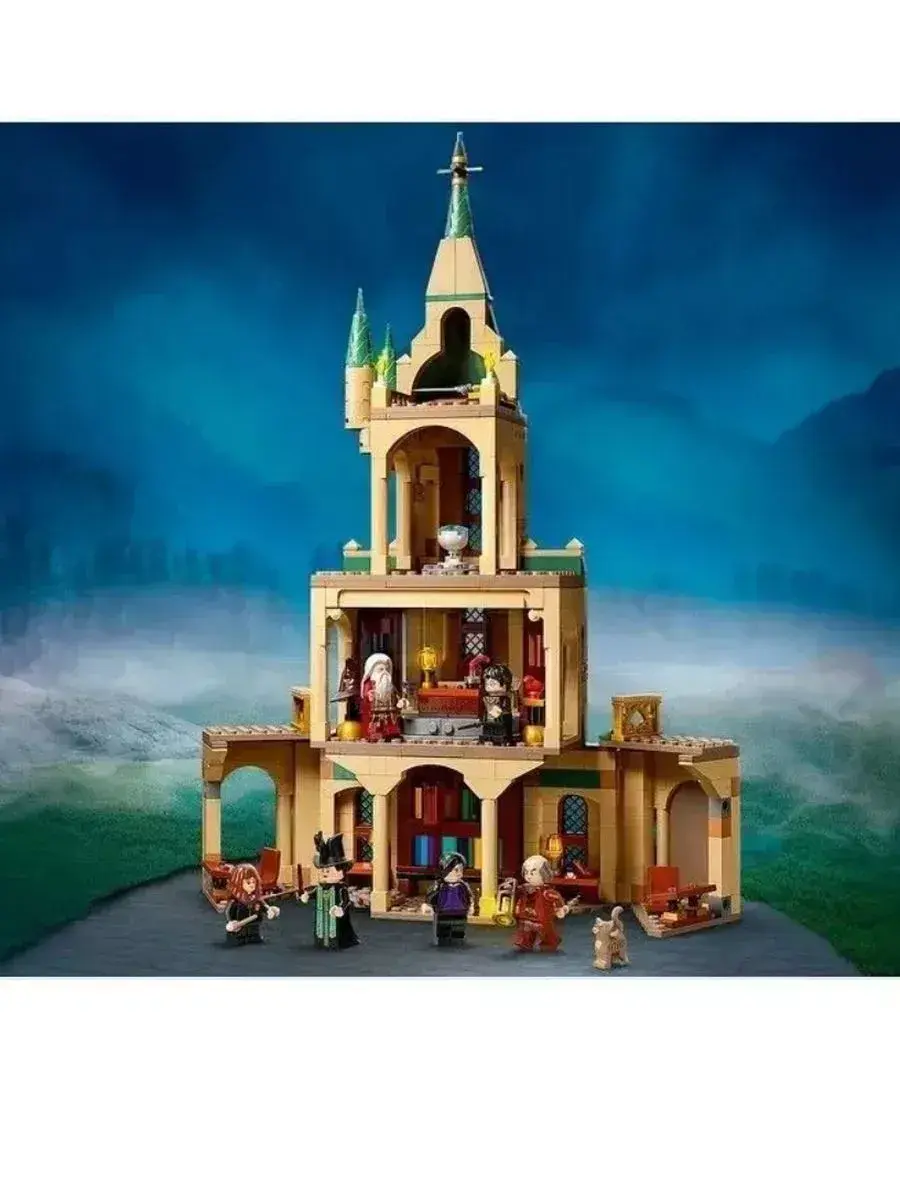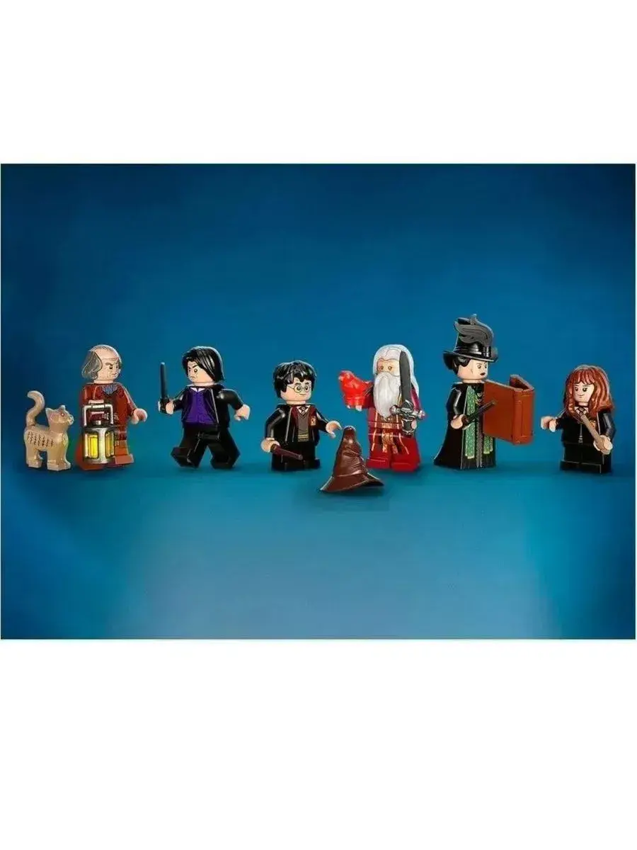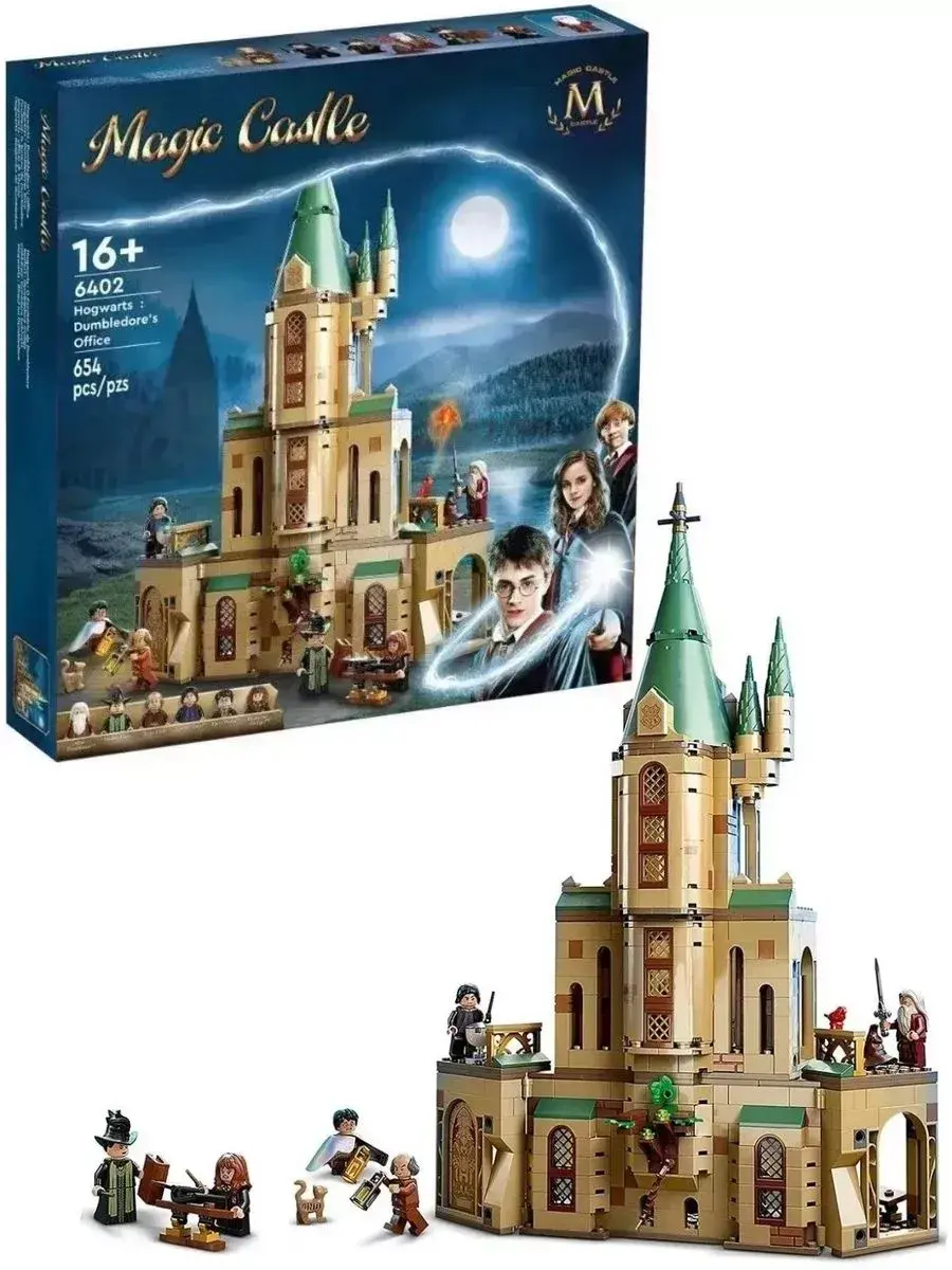 В комплект входят мини-фигурки Дамблдора, Гарри Поттера, Снегга, Фоукса и других персонажей, а также культовые элементы: меч Гриффиндора, Распределяющая шляпа, карта Мародёров, магические артефакты и книги. Всё это позволяет не только собрать модель, но и разыгрывать сцены из любимых фильмов или придумывать собственные истории. Детали надёжно соединяются, а пошаговая инструкция делает сборку простой и увлекательной.