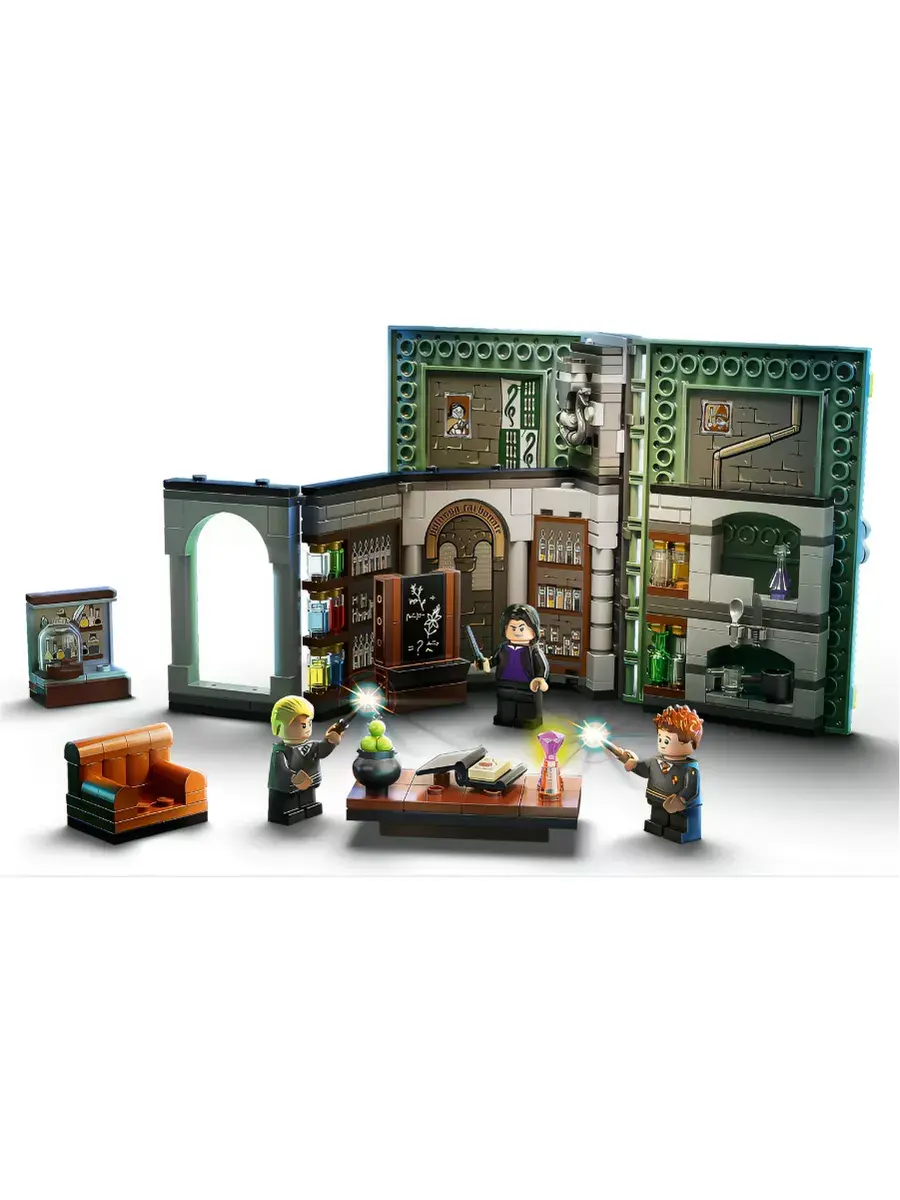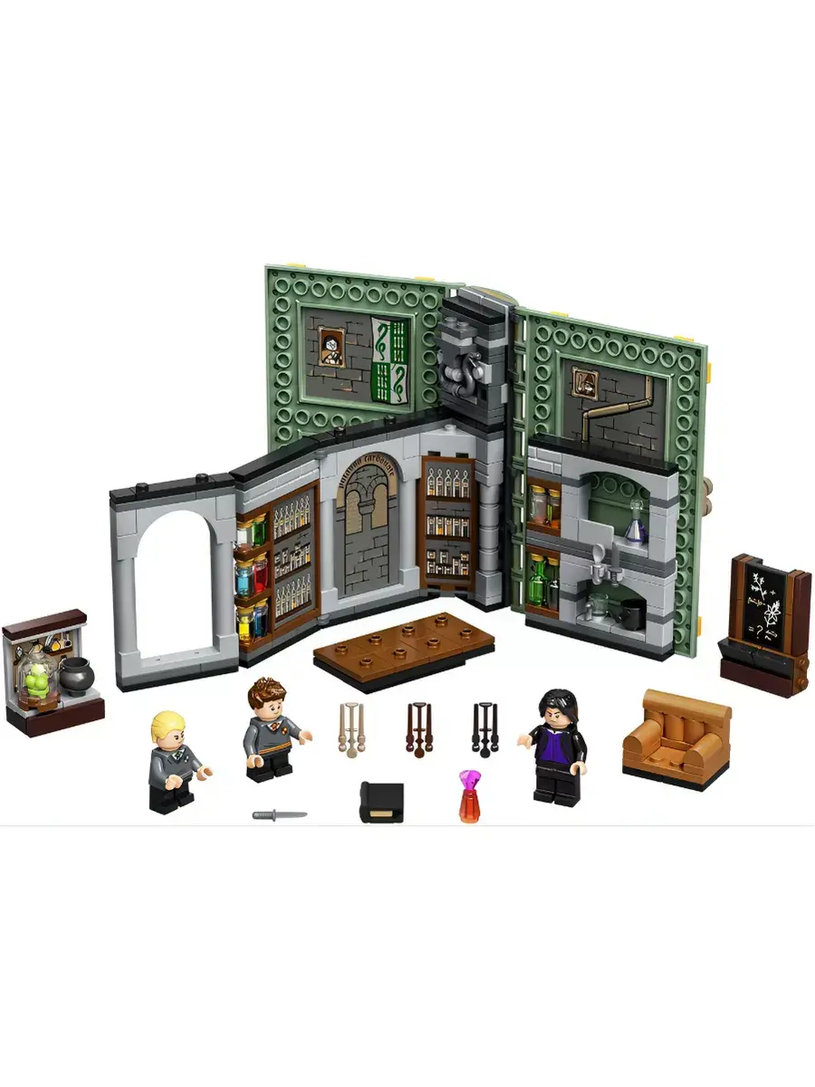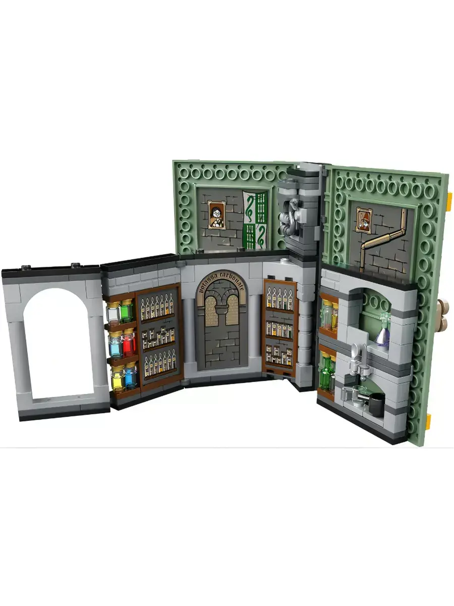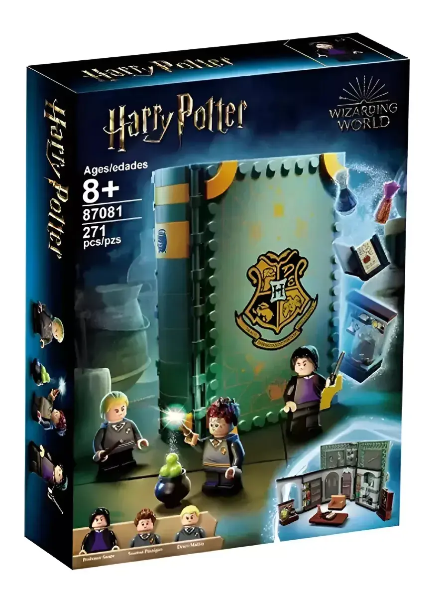 В набор входят более 300 тщательно проработанных деталей, включая мини-фигурки Гарри Поттера, профессора Снегга и других учеников. Книга-конструктор раскрывается, открывая страницы с тайными рецептами и полками с магическими ингредиентами — бутылочками, травами и зельями. Воссоздайте магическую атмосферу учебного класса, где каждая деталь продумана до мелочей.
