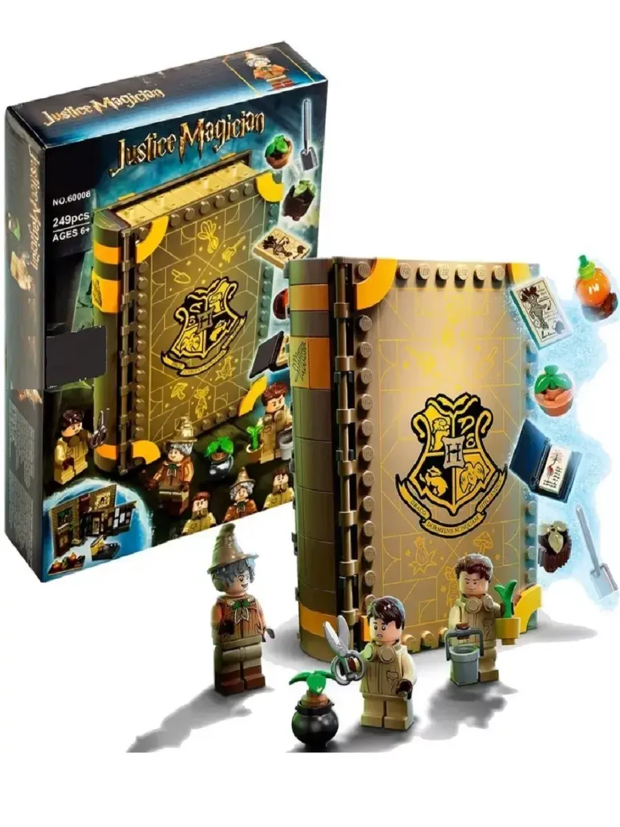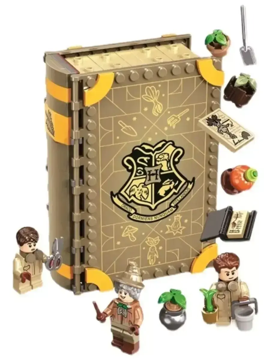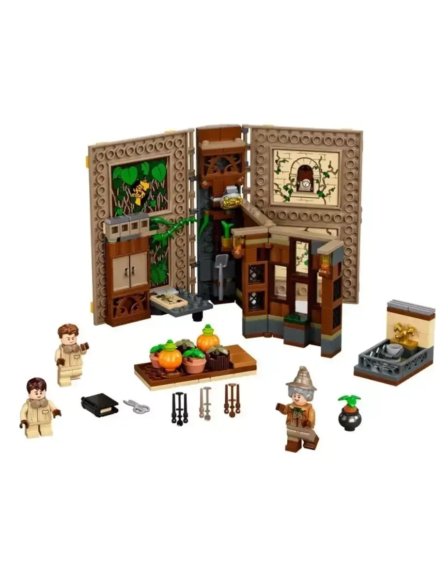 Набор выполнен в формате складной книги: в закрытом виде он компактен и удобен для хранения, а в раскрытом — превращается в полноценную игровую сцену. В комплект входят мини-фигурки Гермионы, Невилла Долгопупса и профессора Спраут, а также тематические аксессуары: мандрагоры, лейки, книги и перчатки. Каждая деталь качественно проработана и прочно соединяется, а пошаговая инструкция делает сборку простой и интересной даже для начинающих.