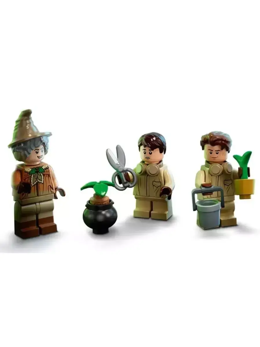 Погрузитесь в увлекательный мир магических растений с конструктором «Урок травологии» из 249 деталей. Этот набор переносит вас в теплицу Хогвартса, где преподаватель профессор Спраут обучает юных волшебников уходу за волшебными растениями. Декорации теплицы, горшки, инструменты, мандрагора и зелёные элементы создают атмосферу настоящего урока из школы магии и волшебства.