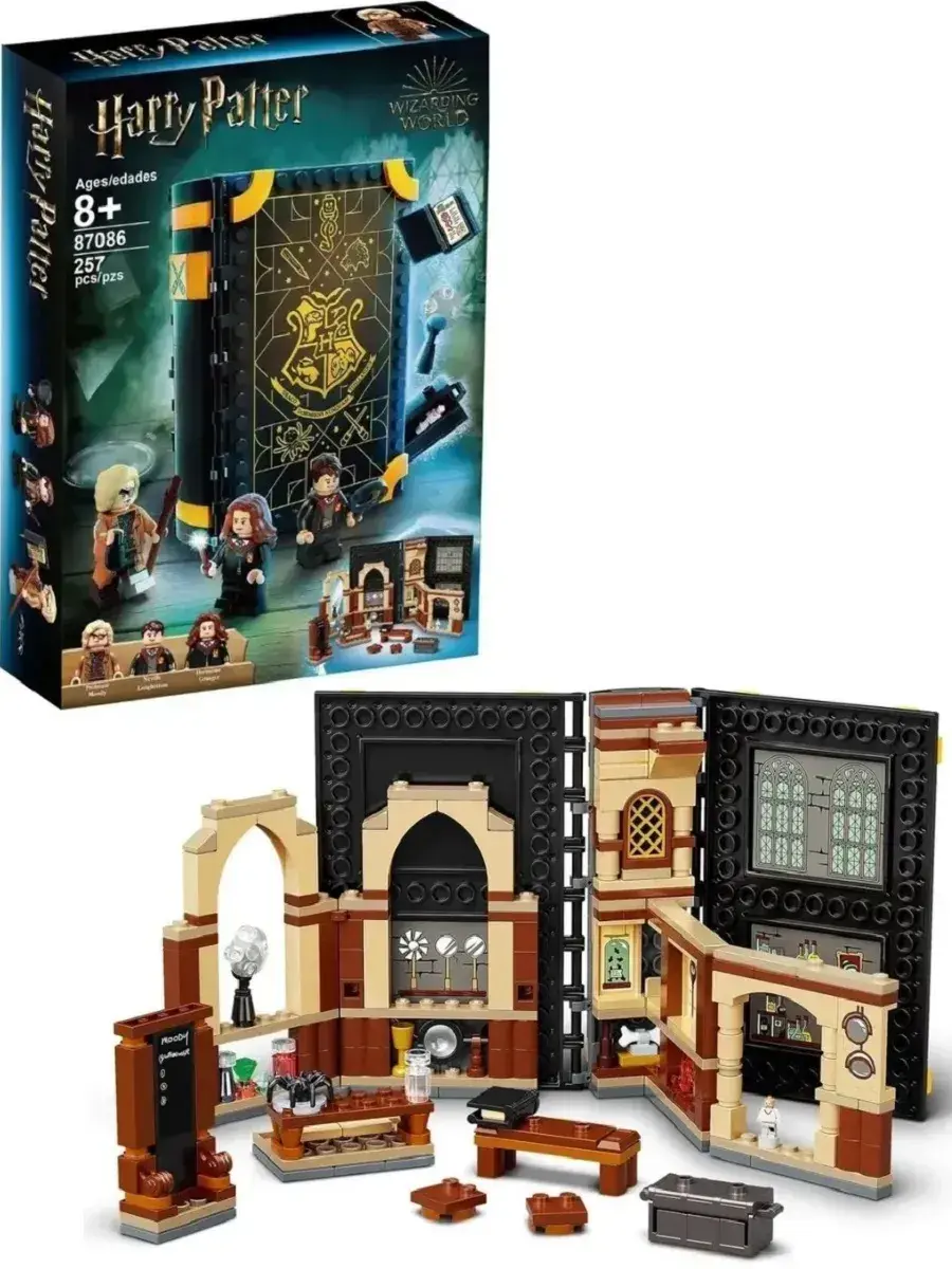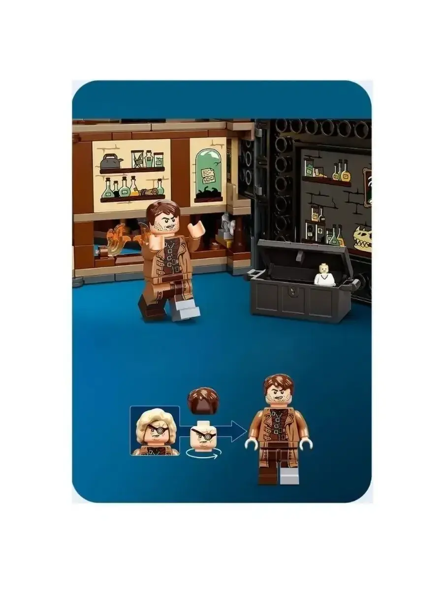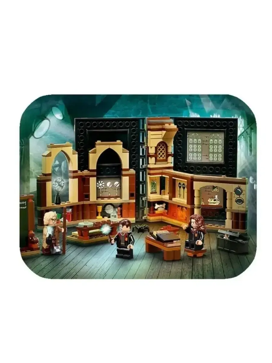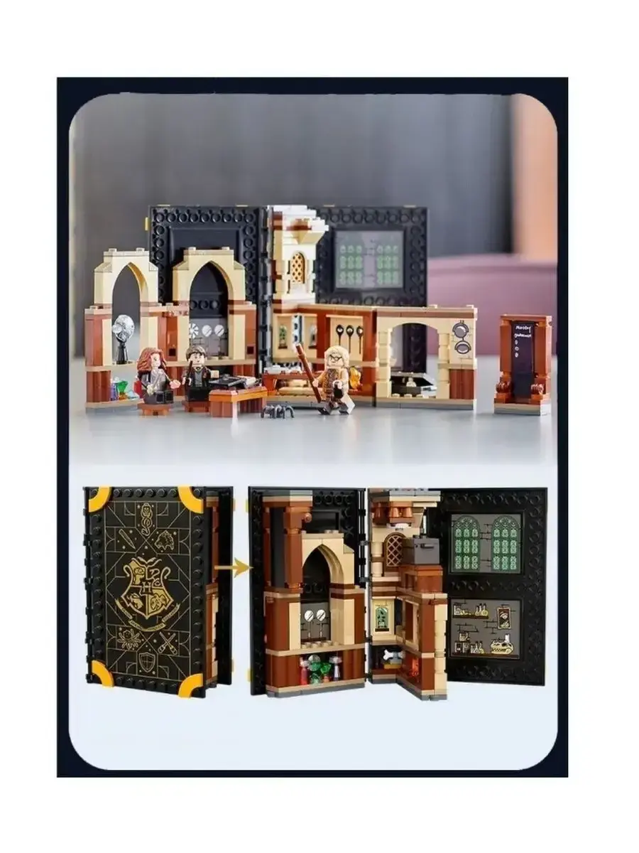 В комплект входят мини-фигурки Гарри Поттера, профессора Люпина и других учеников, а также тематические аксессуары — волшебные палочки, учебники, столы и магические предметы. Класс оснащён подвижными элементами, что позволяет создавать динамичные сцены и разыгрывать волшебные дуэли.