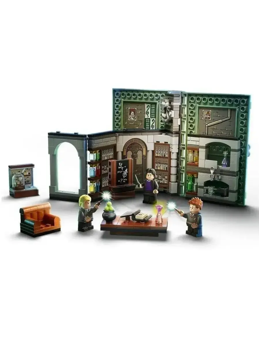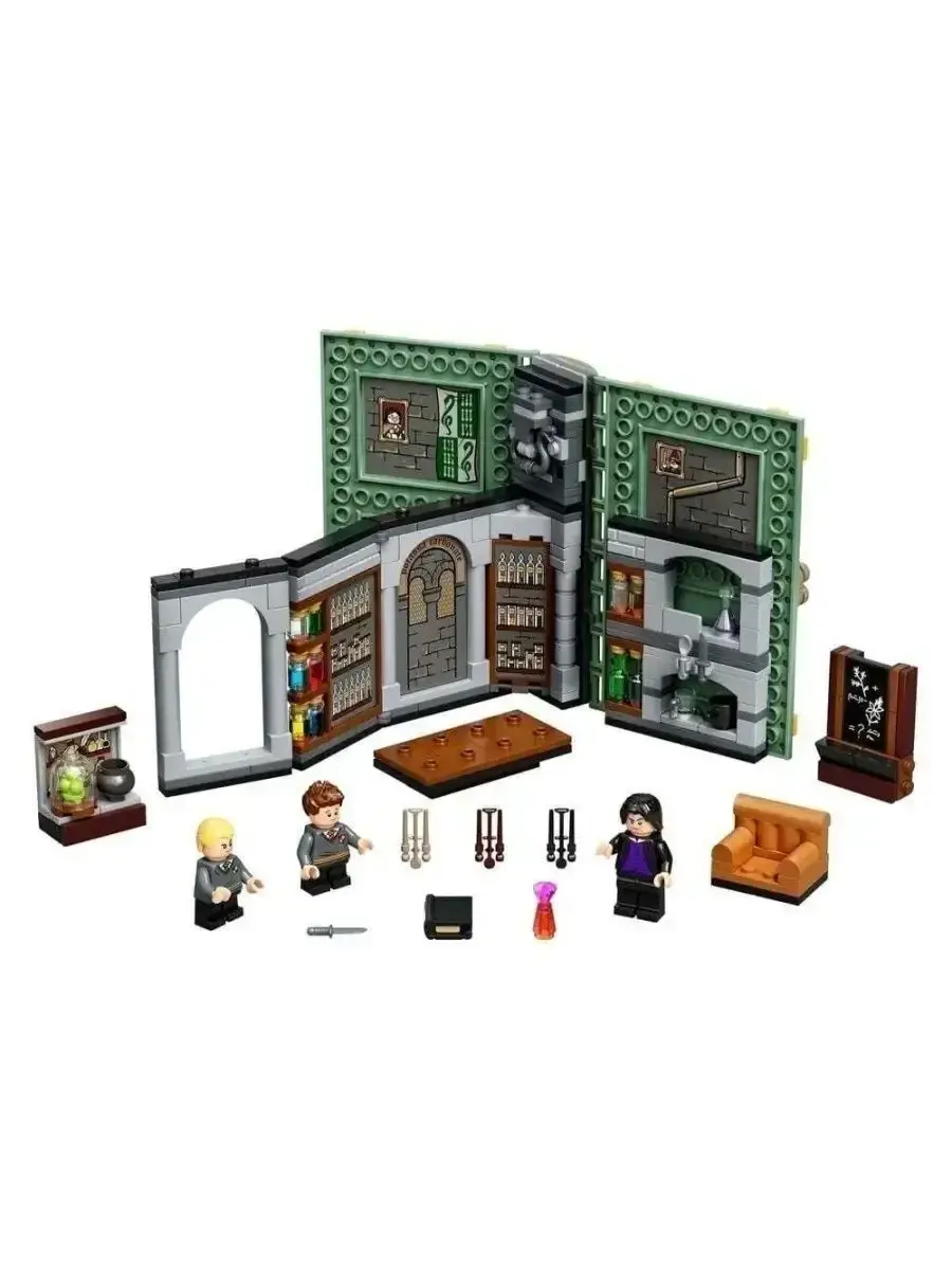 Погрузитесь в атмосферу подземелий Хогвартса с конструктором «Урок зельеваренья» на 285 деталей. Этот набор перенесёт вас прямо в класс профессора Северуса Снейпа, где ученики обучаются искусству варки магических зелий. Детализированная сцена с узнаваемыми элементами интерьера создаёт полное ощущение присутствия в волшебной школе. В набор входят мини-фигурки Гарри Поттера, Снейпа и Драко Малфоя, а также аксессуары: котлы, ингредиенты, книжные полки и волшебные предметы.