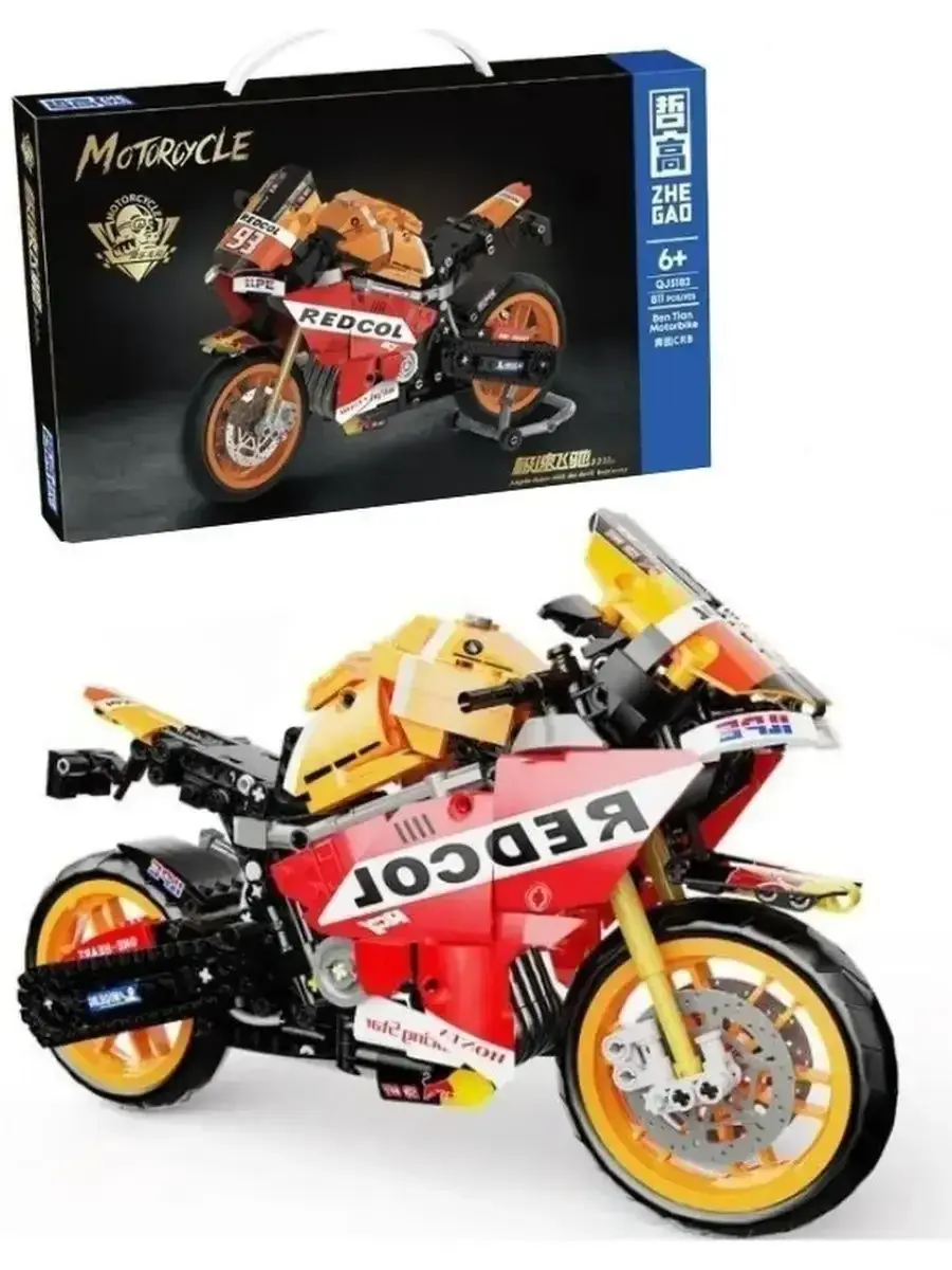 Погрузитесь в мир скорости и гоночных побед с конструктором «Гоночный Мотоцикл Honda» из 811 деталей! Этот детализированный набор позволяет собрать точную модель знаменитого спортбайка Honda, известного своим стилем, мощностью и скоростью.