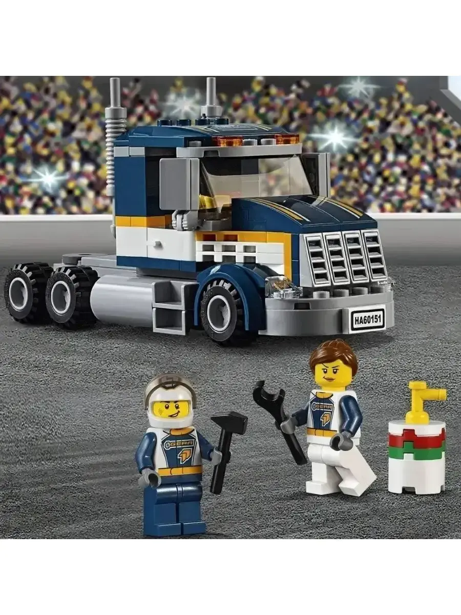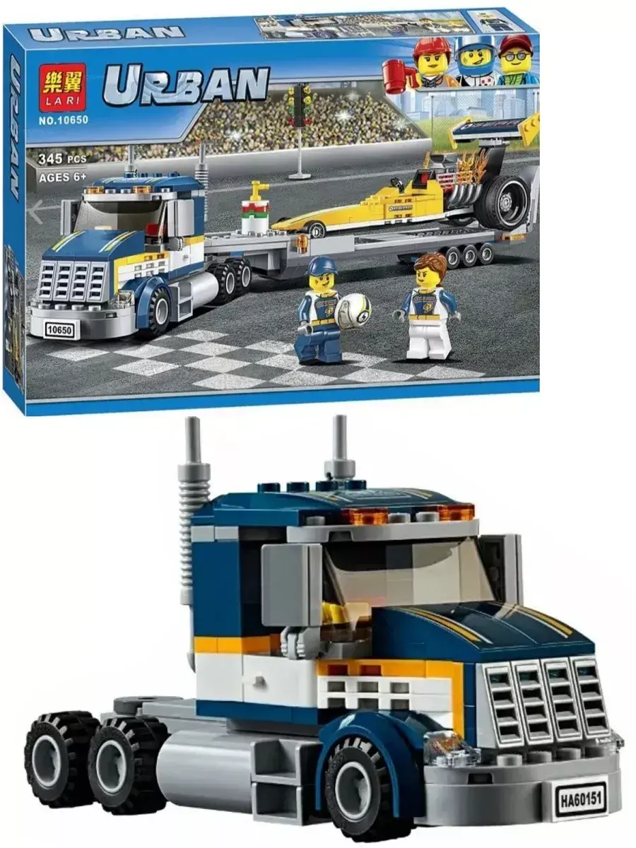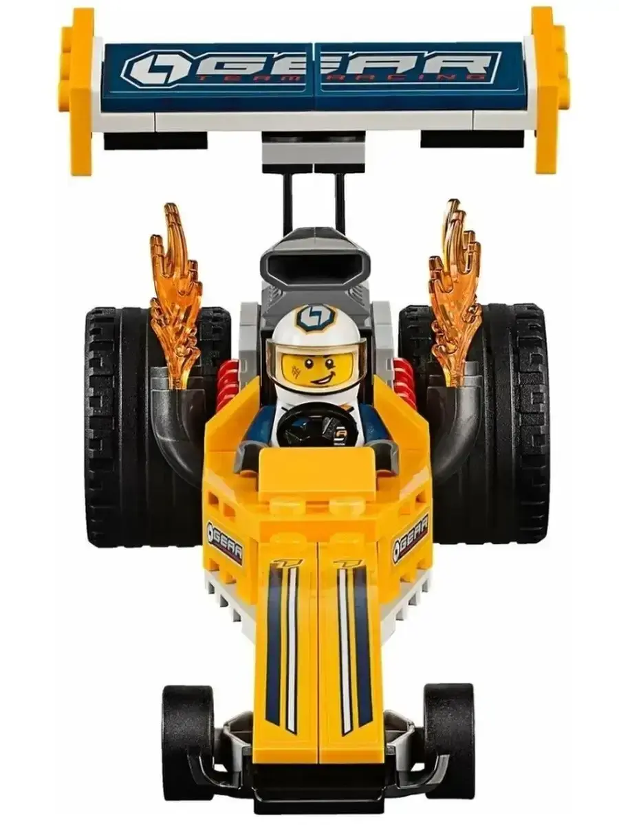 Драгстер представляет собой супермощный автомобиль, предназначенный для участия в соревнованиях на скорость. Его главной задачей является преодоление гоночной трассы максимально быстро.Размер драгстера в собранном виде составляет 8х21х6 смПогрузите драгстер на транспортировочный грузовик (8х14х5 см). Его кабина оборудована множеством реалистичных деталей, таких как прозрачные фары, усиленная радиаторная решётка, сигнальные огни, боковые зеркала, топливный бак и выхлопные трубы.Сзади предусмотрен надёжный крепёж, обеспечивающий соединение с мобильной платформой (29х5х2 см).Припаркуйтесь и подготовьте автомобиль к гонке. Затяните болты и заполните бак горючим из бочки. Потом залезайте на водительское сиденье и поезжайте к стартовой черте. Когда загорится зеленый свет, жмите на газ и вперед! можете собрать транспортировочный грузовик (8х14х5 см). Сзади предусмотрен надёжный крепёж, обеспечивающий соединение с мобильной платформой (29х5х2 см). Её конструкция разделена на два уровня. Наверху можно перевозить техническое оборудование и топливо, а внизу – драгстер.