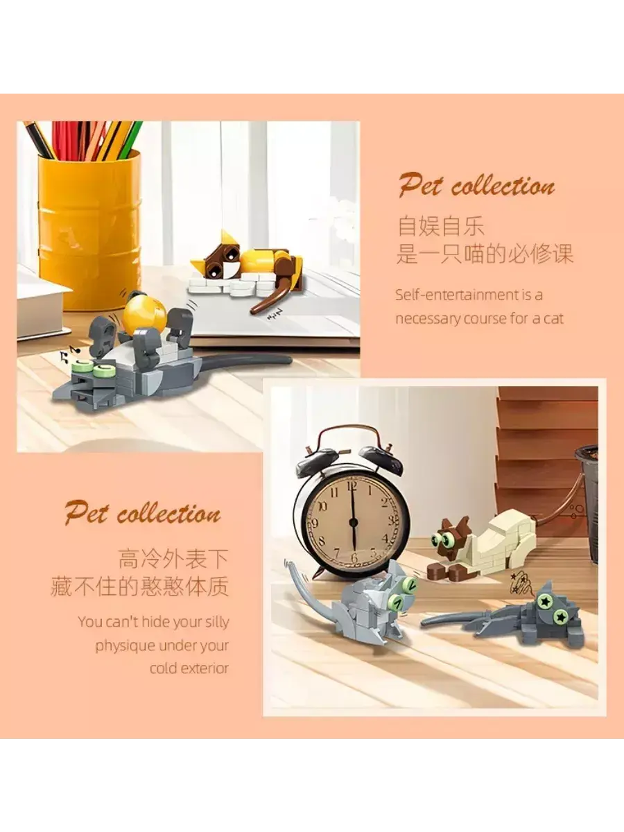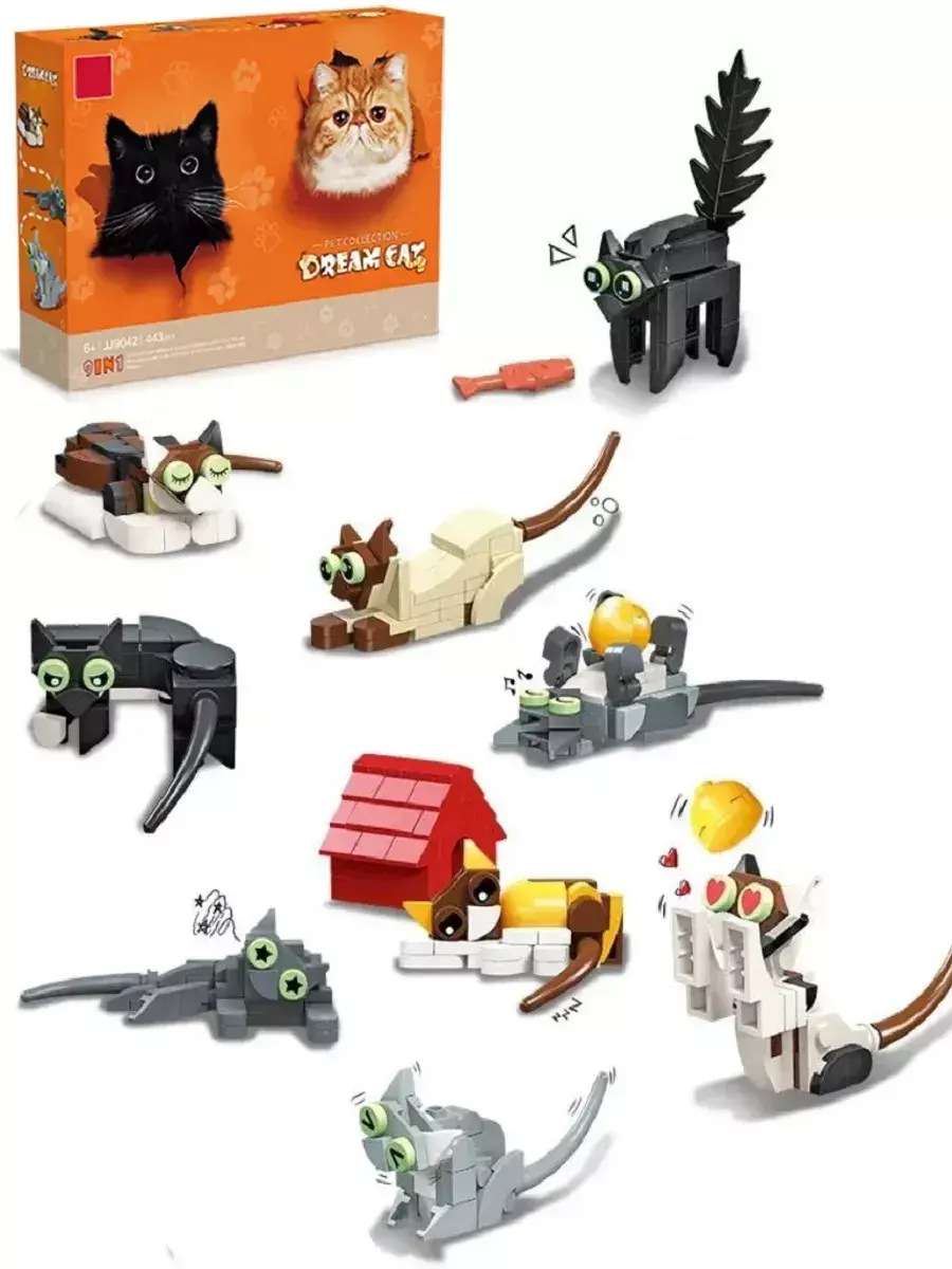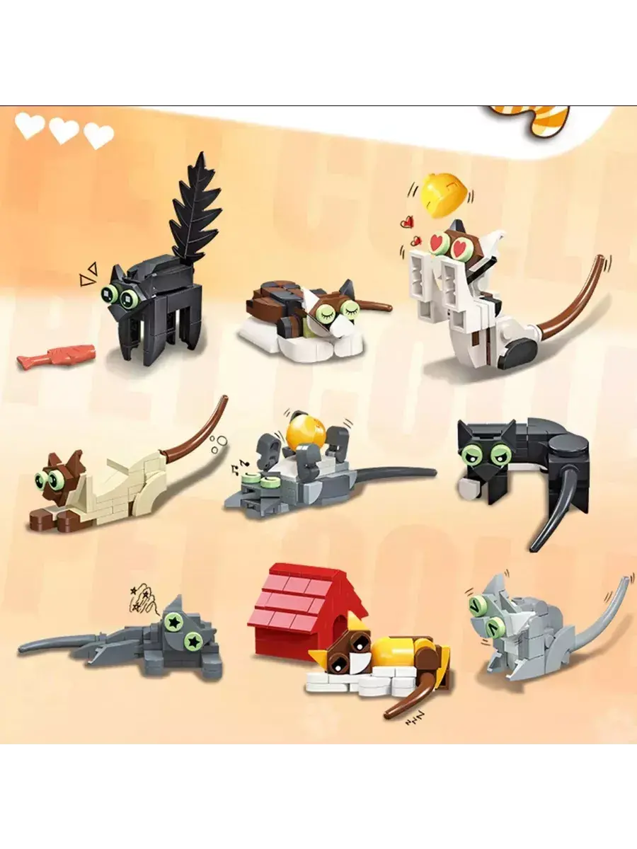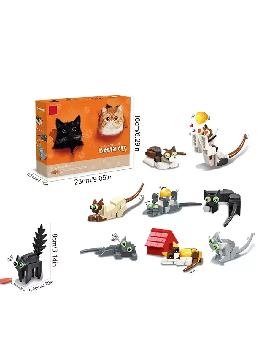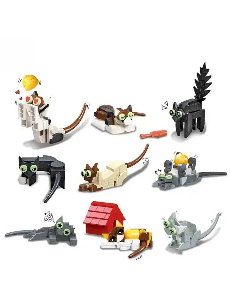 Конструктор Коллекция домашних животных Кошки мечты 443 детали. Дизайн набора животных для кошек: набор животных включает 9 кошек с рыбками и моделями мышей, таких как черная кошка, Трехцветная кошка, сиамская, тигровая пятнистая, фрак и другие милые кошки. Они очень милые и могут сопровождать вас каждый день!