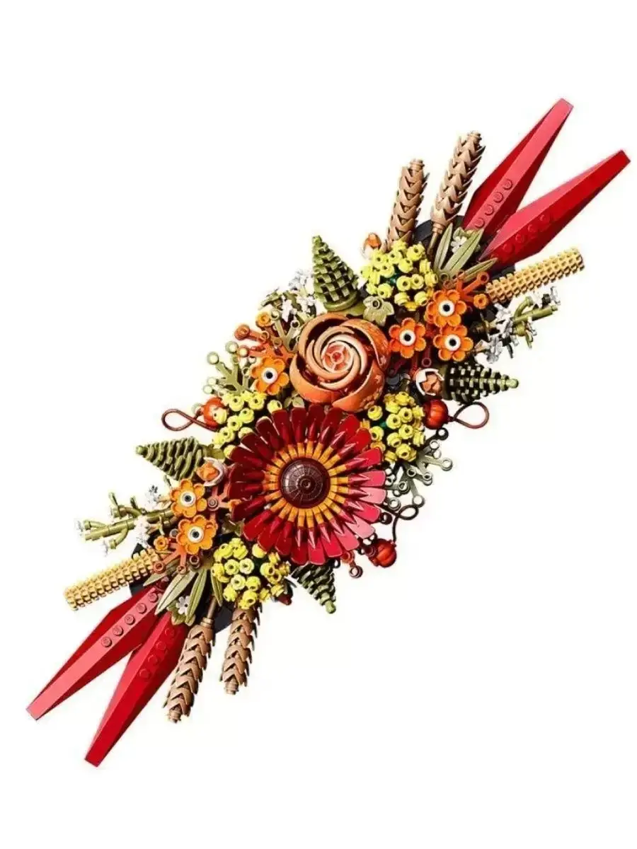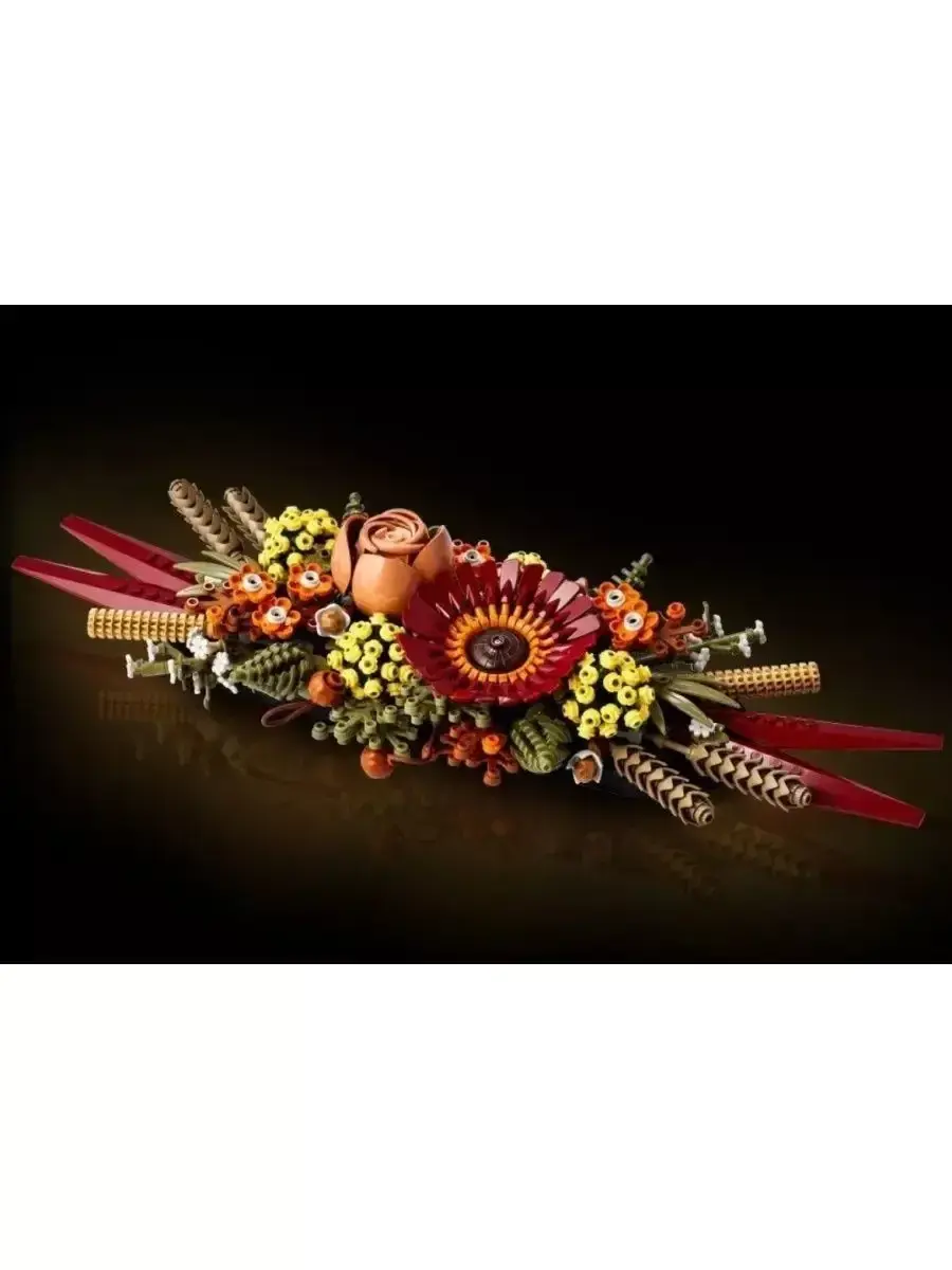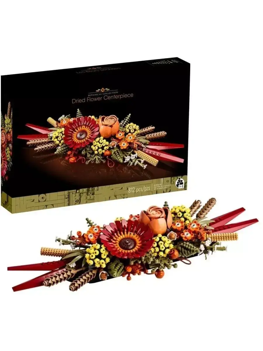Конструктор Композиция из сухоцветов 812 деталей. Создайте предмет домашнего декора, не требующий особого ухода, с этим набором Композиция из сухоцветов. Будучи захватывающим конструкторским проектом для взрослых, набор изобилует яркими цветами, вдохновленными красками осени, и включает в себя герберу и розу в качестве фокусных точек. После того, как он будет готов, вы можете использовать его в качестве яркого центрального элемента или настенного цветочного декора, создав цветочную композицию, которая будет храниться вечно. Развивайте творческий потенциал — создайте и покажите центральную деталь из сухоцветов с помощью продуманного строительного проекта для взрослых. Вдохновленный осенью - этот набор для цветочного подарка полон ярких цветов, вдохновленных красками осени, а в центре внимания — гербера и роза. Стройте вместе - модель имеет раздельную конструкцию, поэтому 2 человека могут конструировать вместе, что дает возможность расслабиться и заняться творчеством с близкими. Пусть ваш декор расцветает - после завершения модель можно использовать в качестве композиции для украшения стола, повесить ее на стену или объединить с одним или несколькими такими же наборами для создания большого цветочного декора. Подарок для любителей цветов - флористы и ценители цветов могут собрать центральное украшение из сухоцветов. Габаритные размеры - высота изделия составляет 7 см, ширина — 40 см, глубина — 13 см.