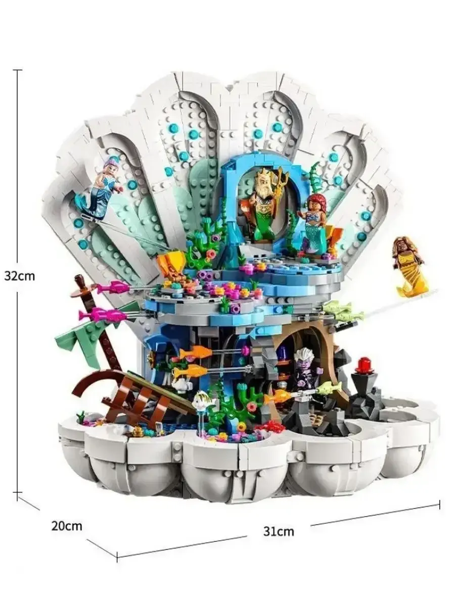 Поделись своей любовью к мультфильму Русалочка Диснея с этим набором Королевская морская раковина. Основанный на грядущем игровом фильме Русалочка, этот подробный набор из 1808 деталей демонстрирует 3 ключевые области: скалу-трон короля Тритона, убежище Ариэль, полное сокровищ, и таинственную пещеру Урсулы все в уникальной оболочке, предназначенной для демонстрации. Этот подробный набор премиум-класса включает в себя 5 известных персонажей из грядущего игрового фильма «Русалочка»: минифигурки принцессы Диснея Ариэль, Карины, Индиры, короля Тритона и Урсулы, а также фигурки Себастьяна и Флаундера. После сборки морская ракушка представляет собой впечатляющий экспонат.