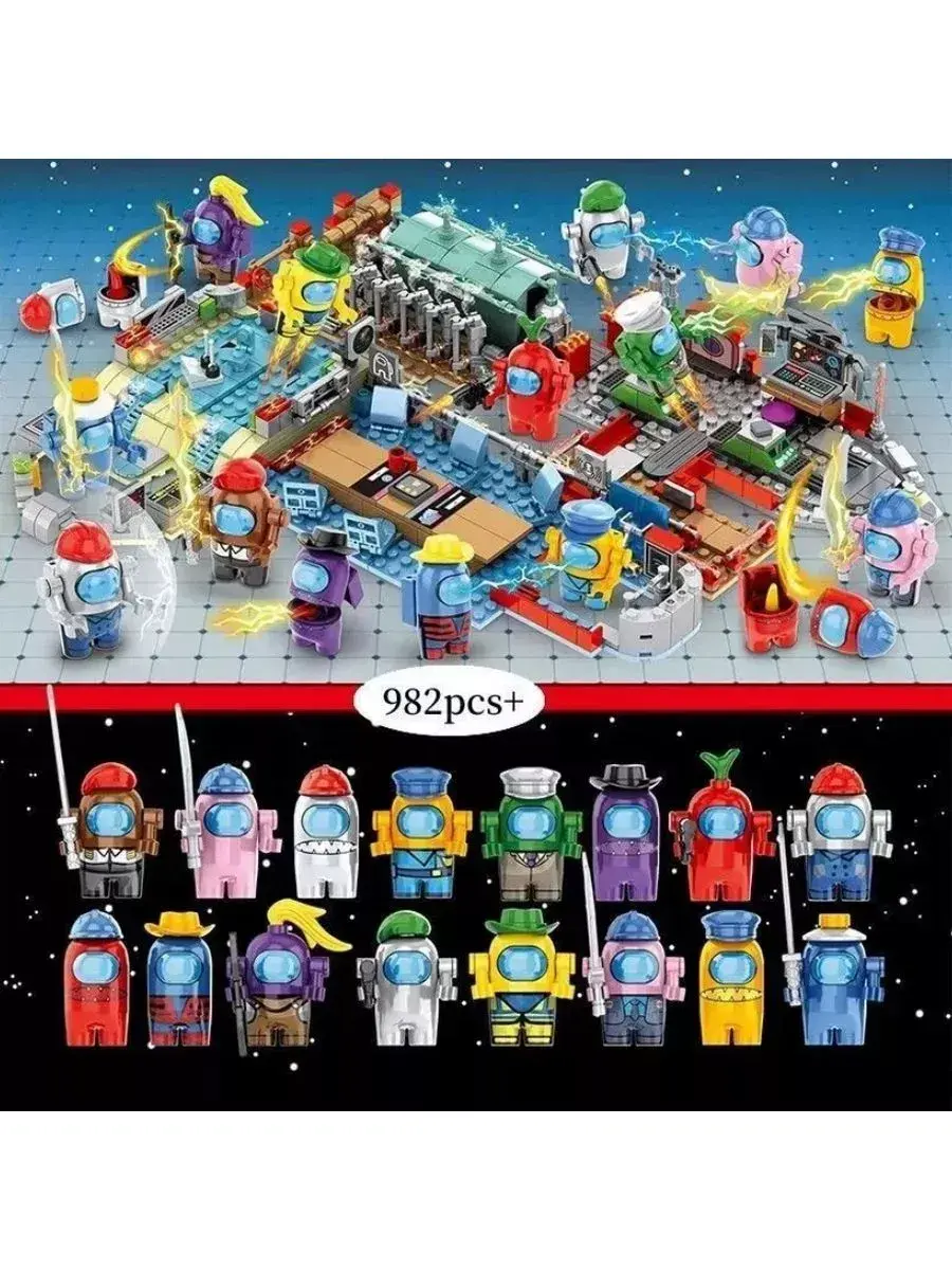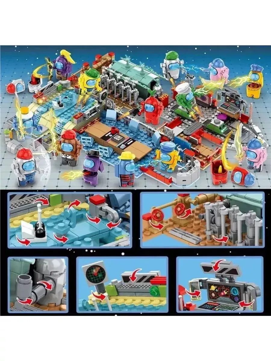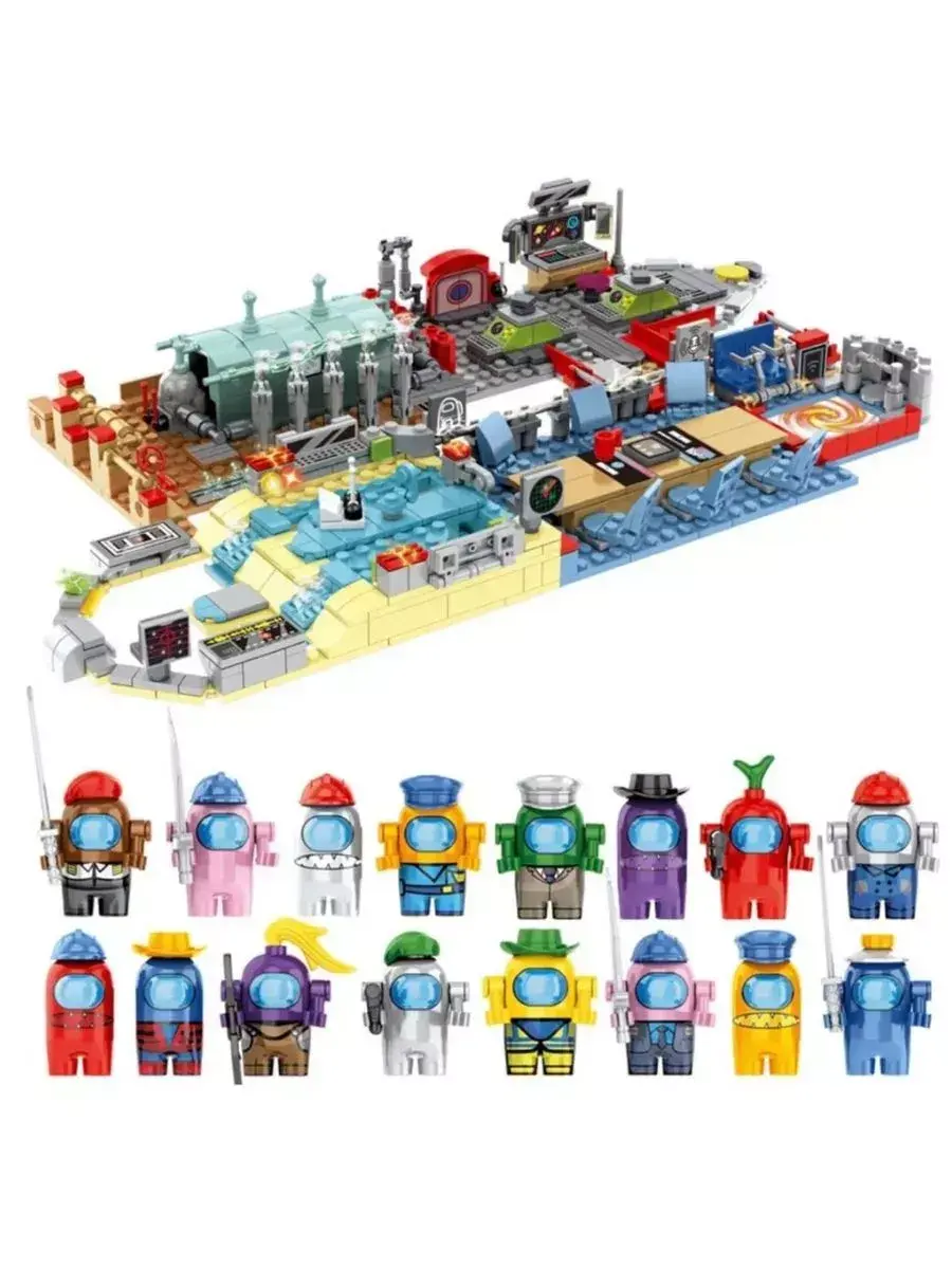 Конструктор для мальчика и для девочки Амонг Ас Among As состоит из 982 деталей и амонг ас фигурки 16 шт! Амонг ас конструктор - увлекательный процесс, развивающий мышление, логику, воображение, фантазию, мелкую моторику, память, навыки конструирования, робототехники, программирования, творчества. Оригинальный пластиковый конструктор служит прекрасным подарком на день рождения, новый год, 23 февраля, ребенку, подростку и увлечет даже взрослых. Большой конструктор состоит из гипоаллергенного пластика, упаковка из картонной коробки. Данная модель содержит сразу 4 разных комнаты, которые объединяются между собой и образуют космический корабль, содержит светящиеся блоки, благодаря которым конструктор оживает и дарит новые эмоции, а также 16 персонажей из игры. Подарочные игровые блоки в сборном виде можно поставить дома на компьютерный стол или полку и собрать целую коллекцию крупных локаций, игрушечный город лабиринт фигур можно легко собирать его с друзьями и семьей.
