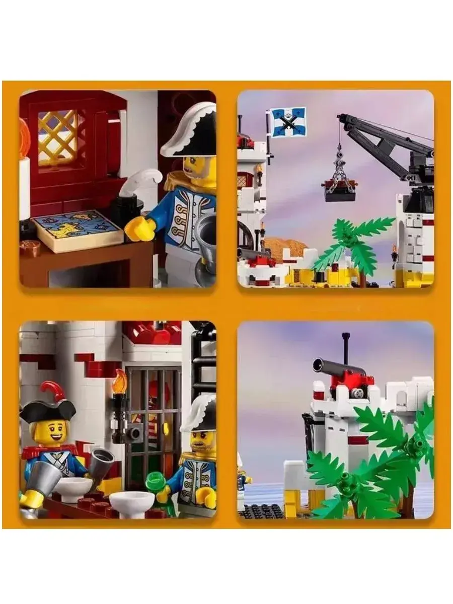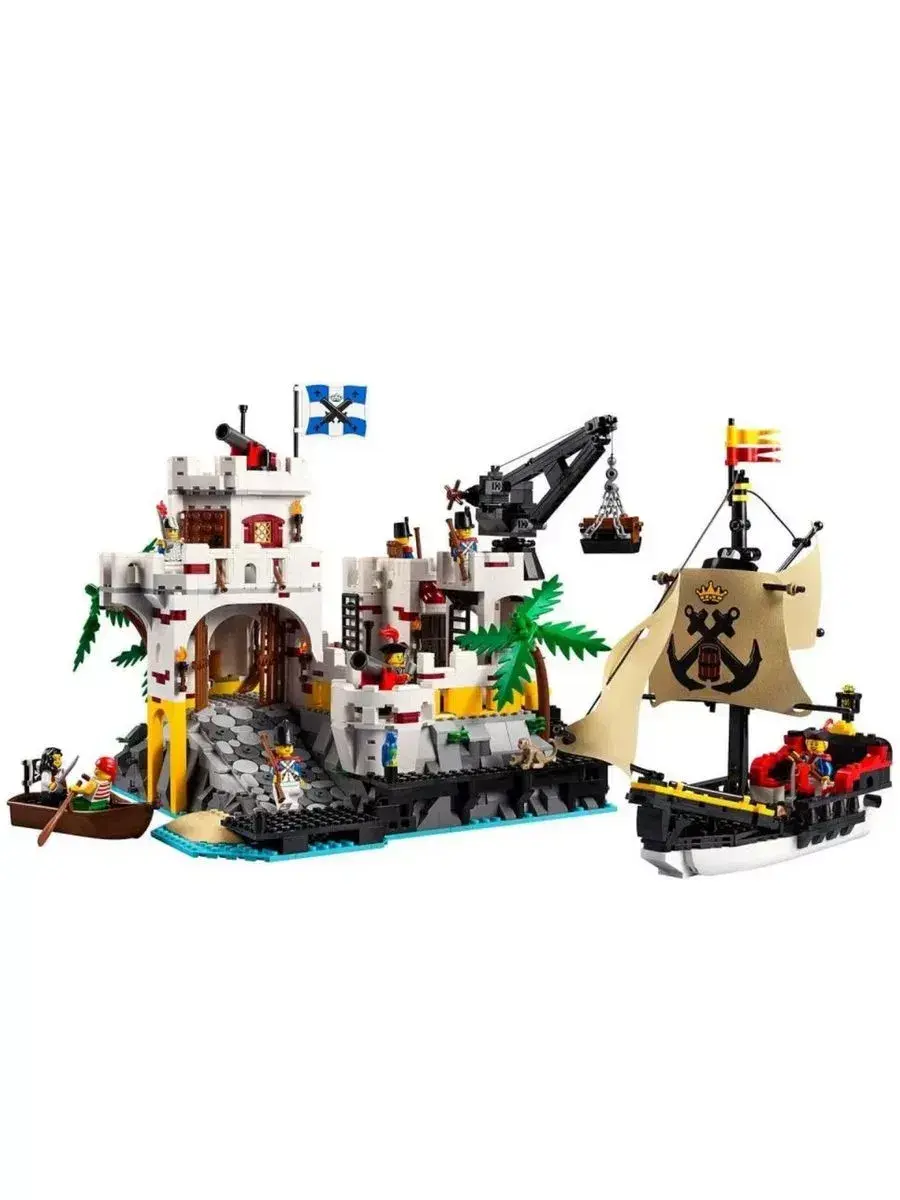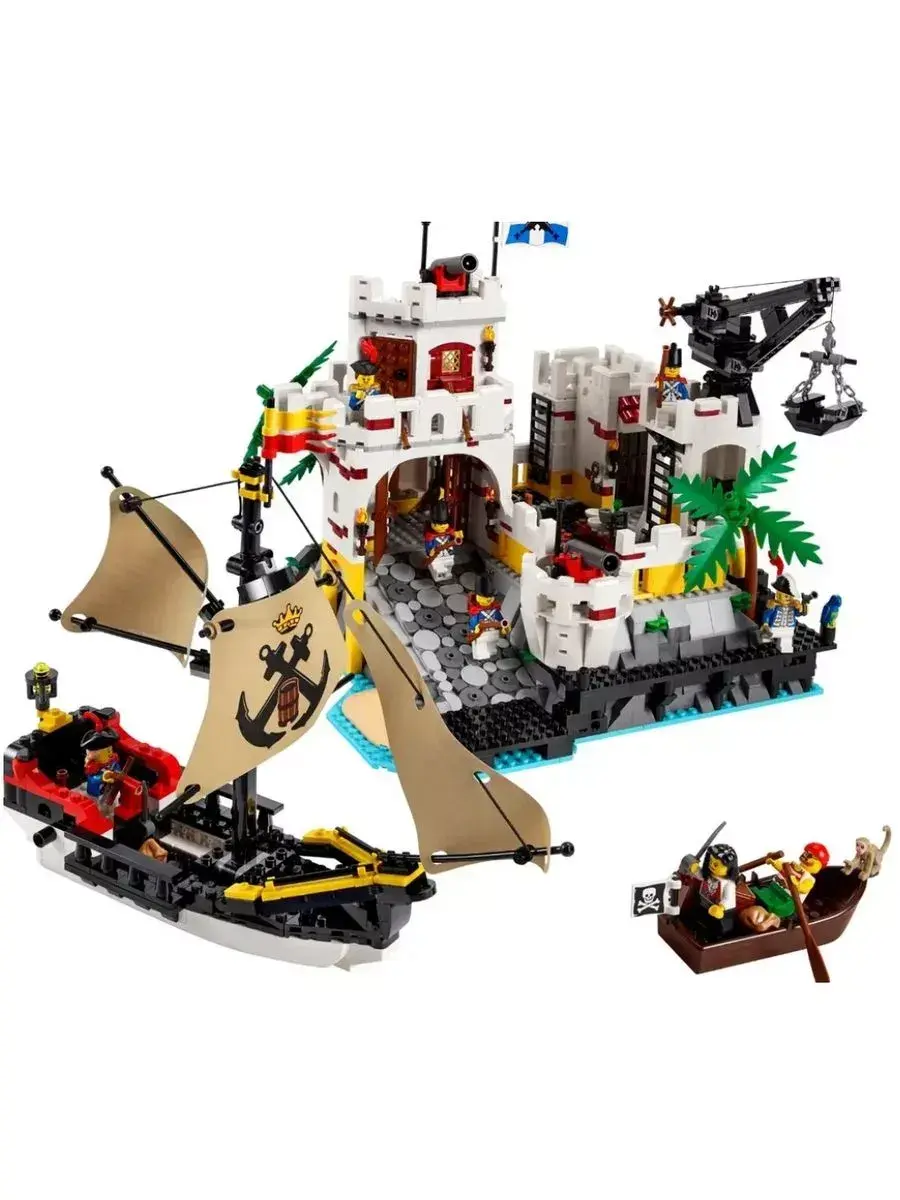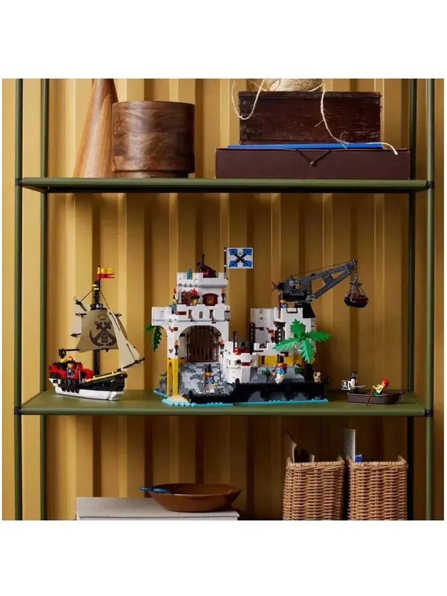 Окунись в атмосферу пиратских наборов 80-х годов прошлого века с конструктором Крепость Эльдорадо. Это целый гигантский форт, возведенный в виде прибрежной крепости. Здесь есть множество детализированных комнат, наполненных ящиками и различной бытовой утварью. У форта даже есть подъемный кран. Швартуй свой пиратский корабль и грузи награбленное золото, только не забудь, что у крепости Эльдорадо есть вооруженная охрана, которую ты можешь обойти на шлюпке. В наборе 6 имперских солдат и двое пиратов. Размеры — форт (в открытой конфигурации) имеет высоту более 27 см, ширину 70 см и глубину 24 см.