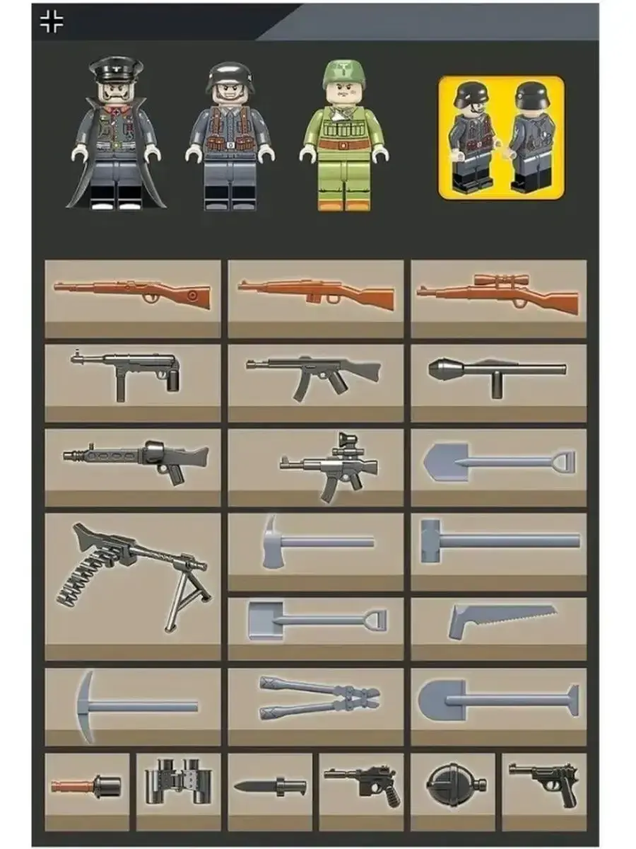 Конструктор пластиковый Легкий немецкий танк. Порадует Вас начиная с красочной коробки и заканчивая собранным танком. По приложенной к набору сборочной инструкции они открываются согласно порядковому номеру, превращая работу в строго распланированный процесс. В наборе имеются: 3 фигурки(Экипаж), холодное и огнестрельное оружие. Сам танк имеет поворот башни на 360, ствол танка опускается и поднимается, механические люки, механическое шасси. Данный конструктор позволит ребёнку собрать хорошую копию бронированной машины: вращаются гусеницы; поворачивается на 360 градусов башня; открывается верхний люк; изменяется угол обстрела пушки.