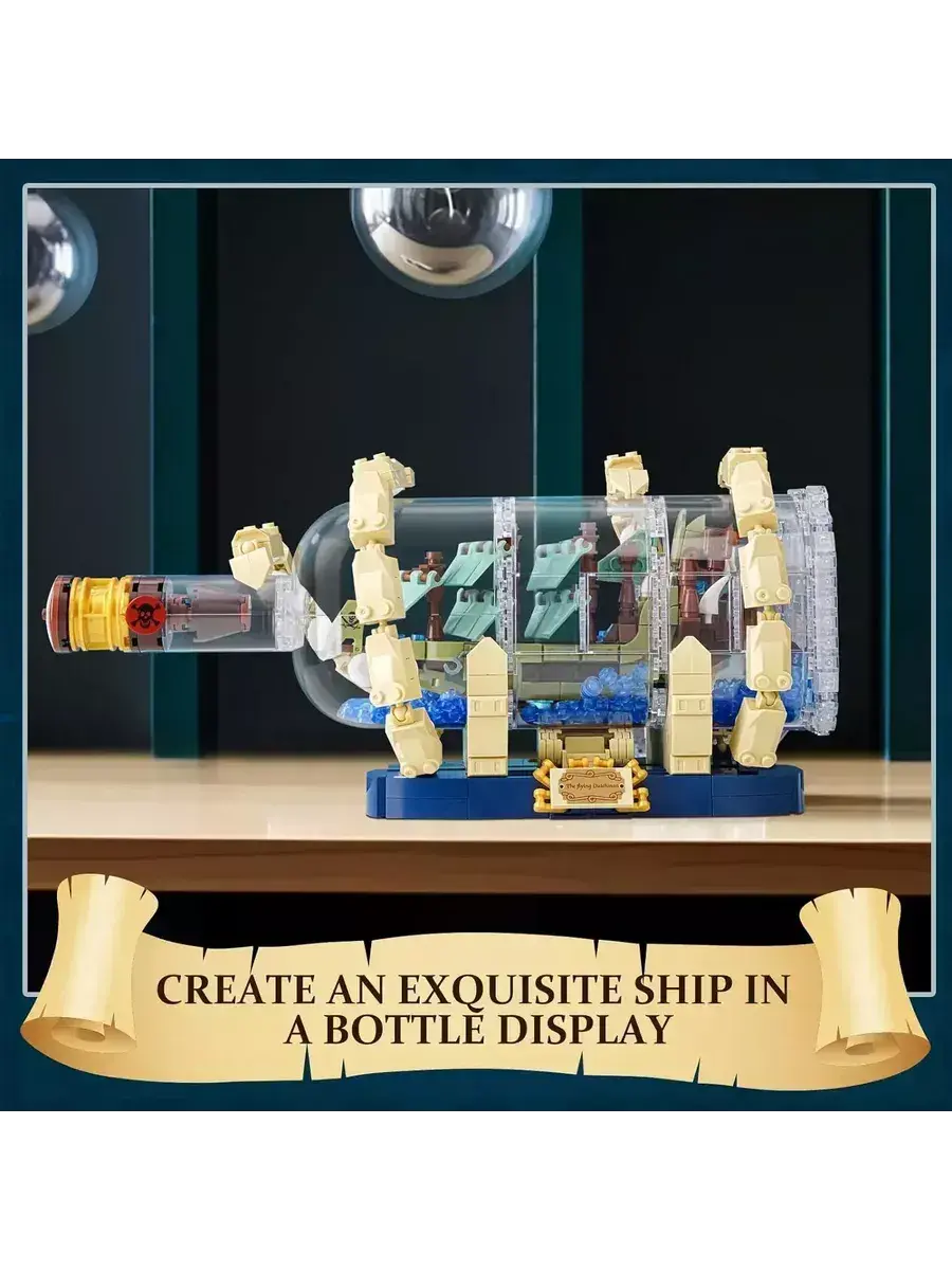 Воссоздайте миниатюрную модель легендарного трехмачтового корабля "Летучий голландец", а затем поместите его в бутылку, оснащенную пробкой с сургучной печатью. В комплект набора входит специальная демонстрационная подставка с именной табличкой, благодаря которой коллекционная модель корабля станет прекрасным элементом интерьера. Набор конструктора Летучий Голландец "Корабль в бутылке" - это отличный подарок, который доставит немало удовольствия, не только во время сборки и игры, но и как коллекционная игрушка для украшения выставочной полки.