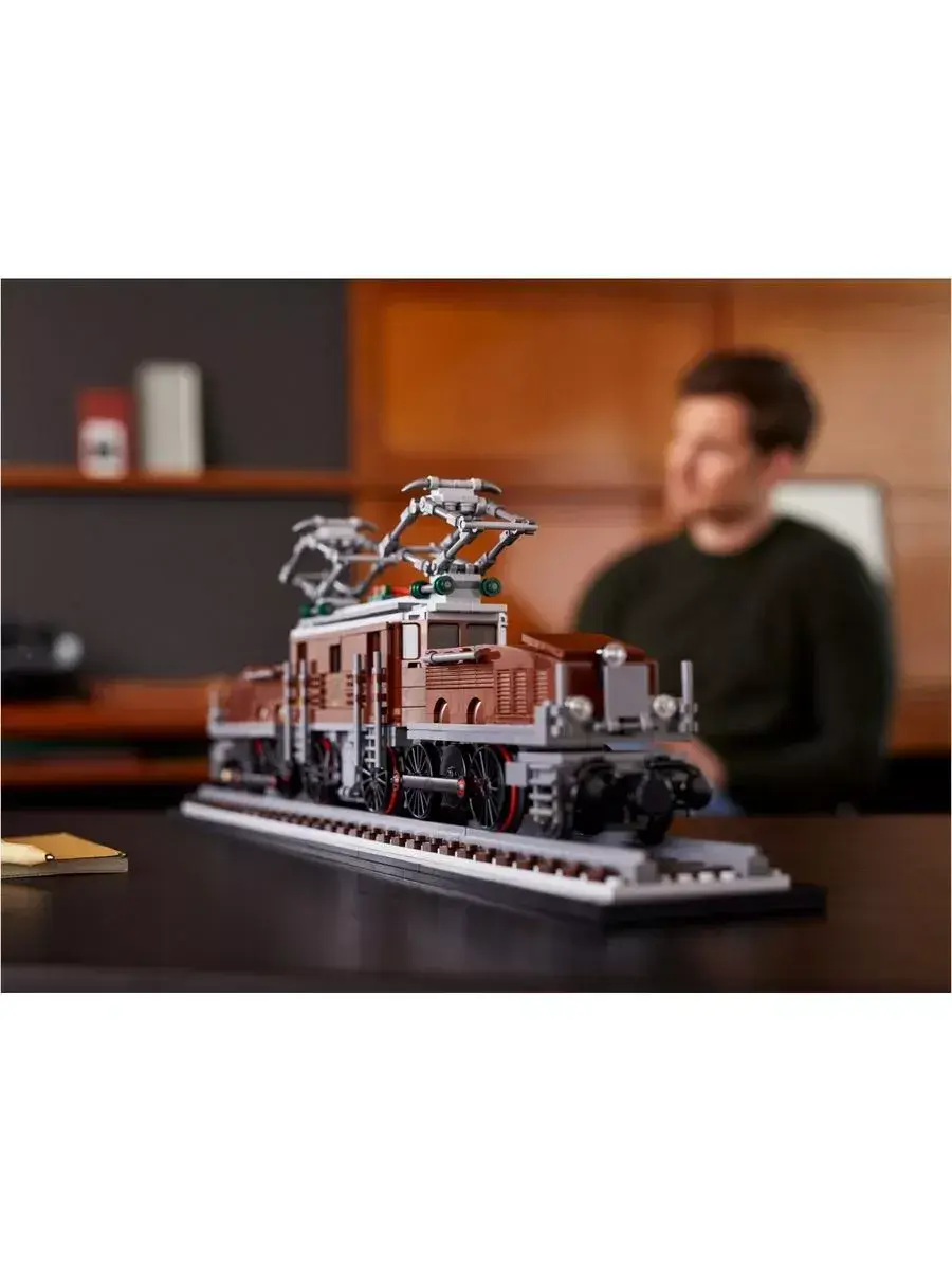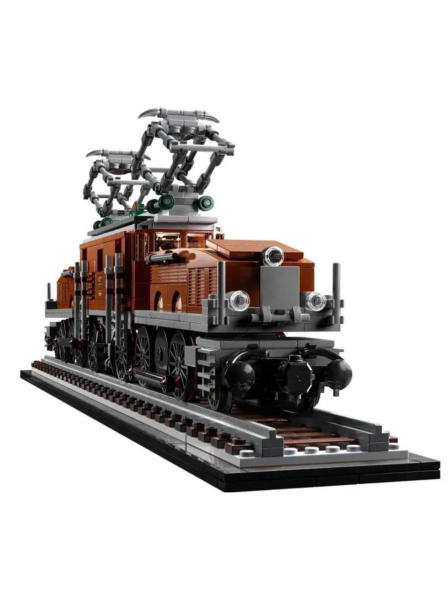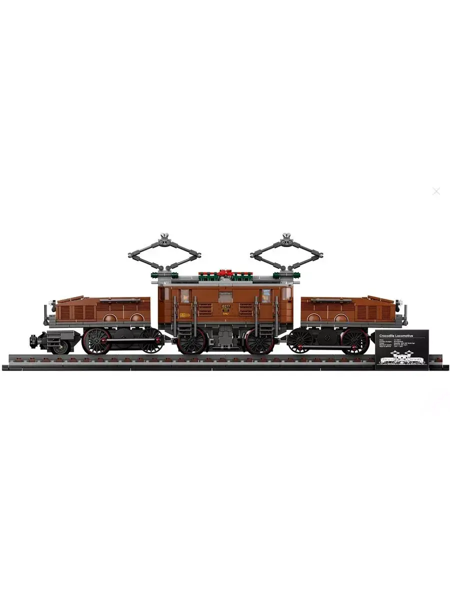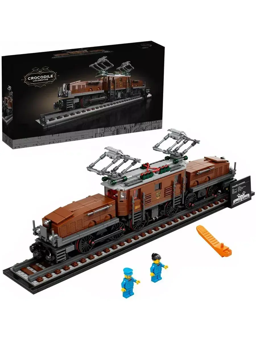 Исследуйте потрясающие аутентичные черты легендарного локомотива «Крокодил». В набор входит подставка с железнодорожными путями, табличка и две минифигурки с инструментами. Это идеальная модель для любителей поездов и конструкторов. Она станет замечательным творческим подарком и принесёт своему владельцу море удовольствия. Высота поезда — 16 см, длина — 52 см, ширина — 8 см.