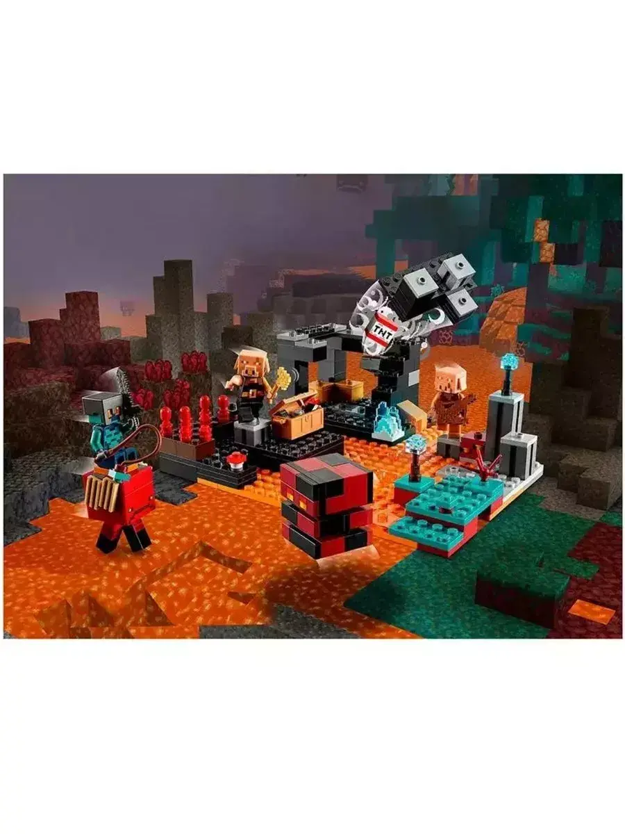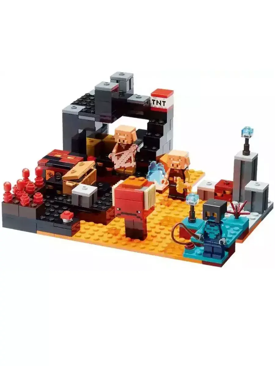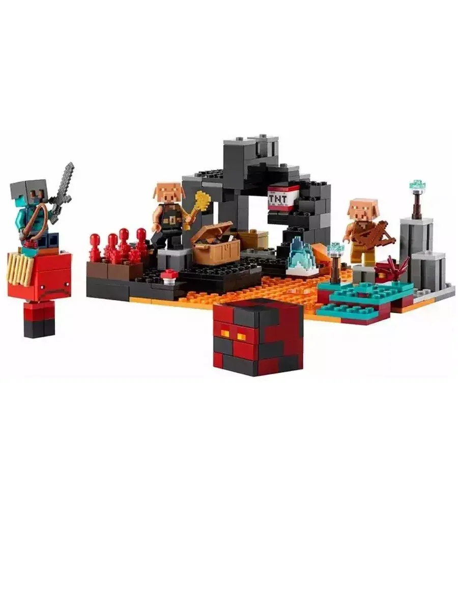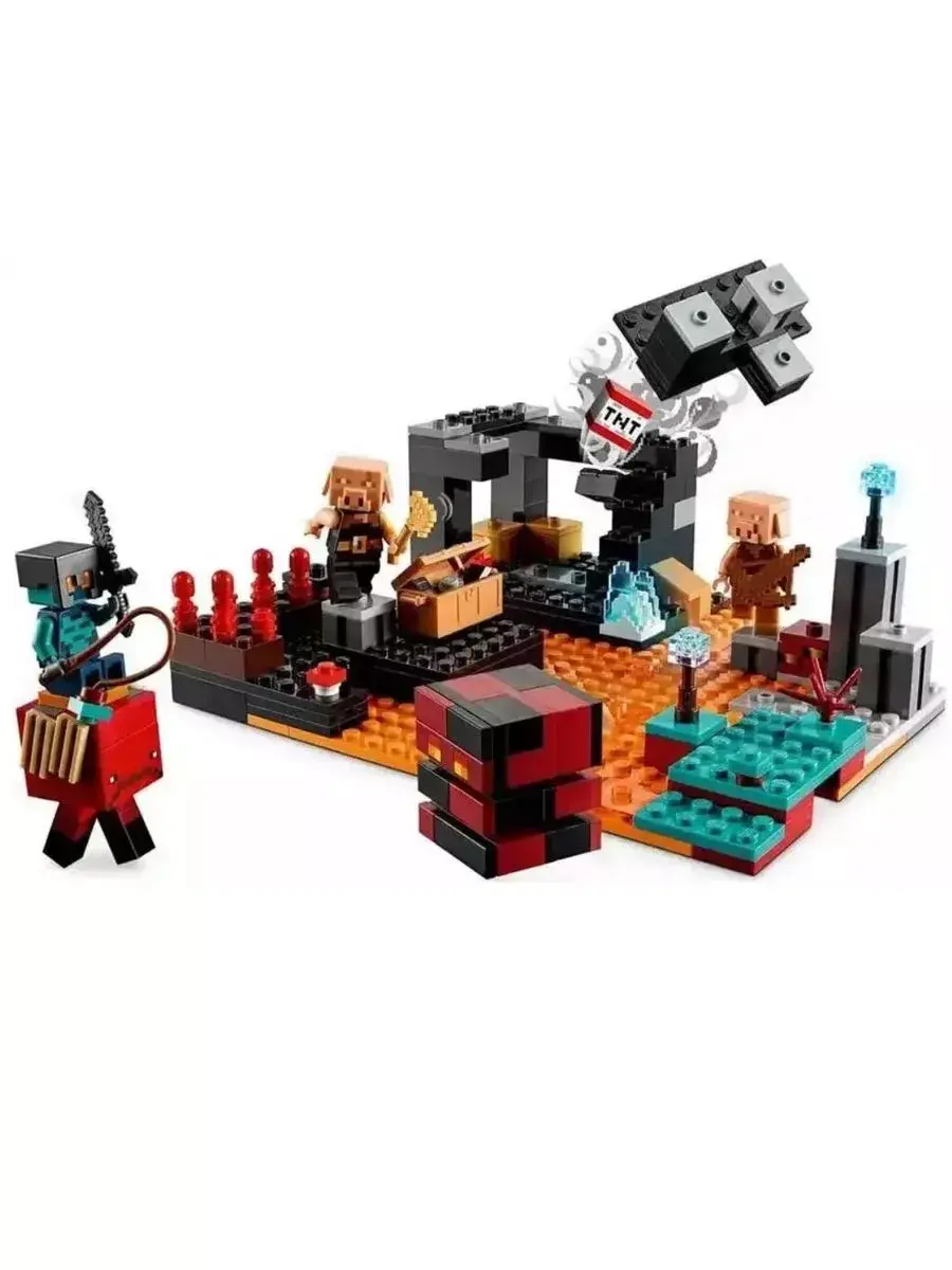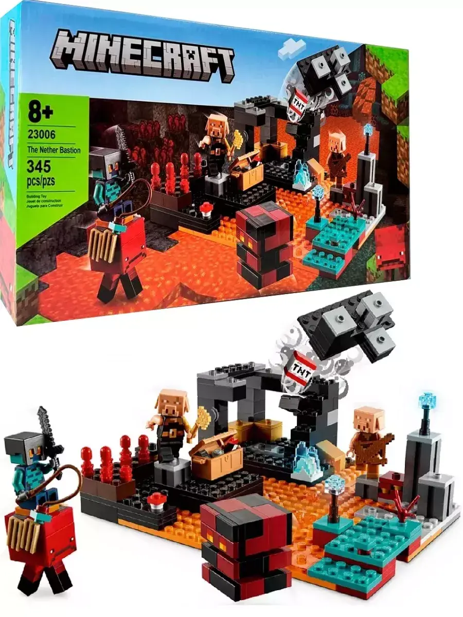 Конструктор "Майнкрафт: Бастион нижнего мира" — это захватывающий набор из 345 деталей, который переносит ребёнка в загадочный и опасный мир Нижнего мира Minecraft. В комплект входят элементы бастиона с крепостными стенами, башнями, различными архитектурными деталями, а также фигурки персонажей и аксессуары, создающие динамичную и увлекательную игровую сцену.