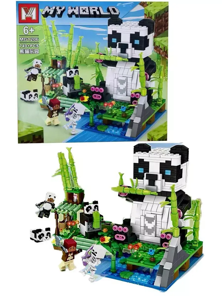 Конструктор "Майнкрафт: Дом панды" — это увлекательный набор из 740 деталей, который позволит ребёнку создать настоящий уютный дом для любимых панд в стиле Minecraft. В комплект входят детализированные элементы дома с окнами, дверями и крышей, а также фигурки панд и разнообразные аксессуары, которые добавляют живости и делают игру максимально реалистичной.