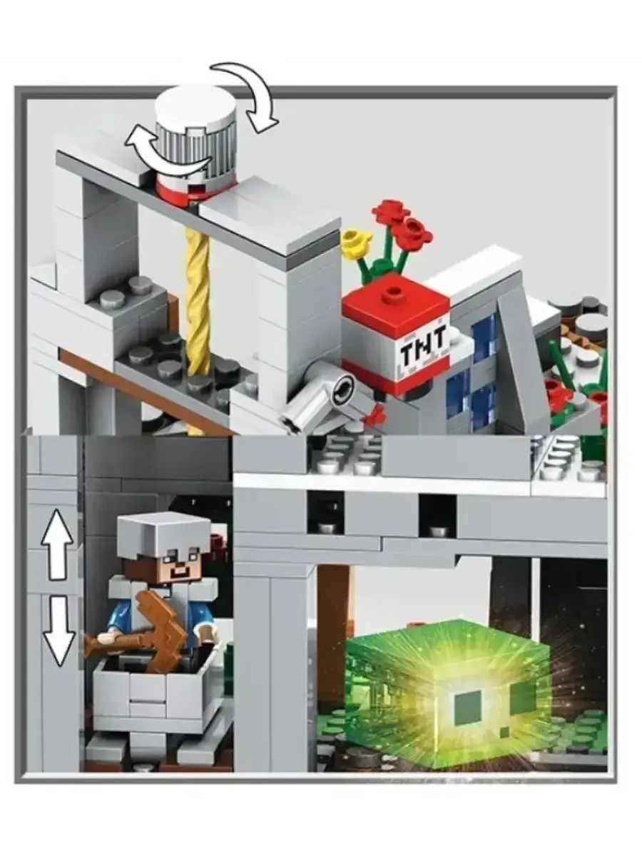 "Горная пещера" — это возможность окунуться в мир исследований и приключений Minecraft, развивая творческие способности и получая удовольствие от игры. Подарите ребёнку часы захватывающего творчества с этим набором из 760 деталей.