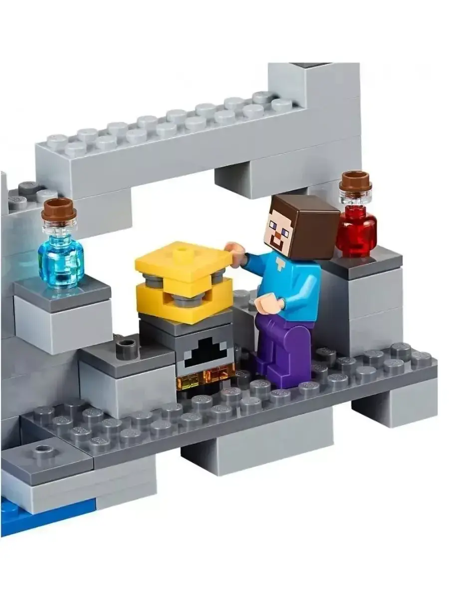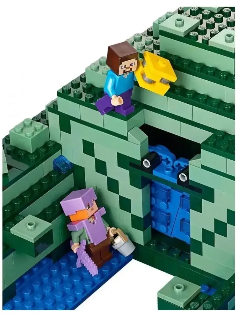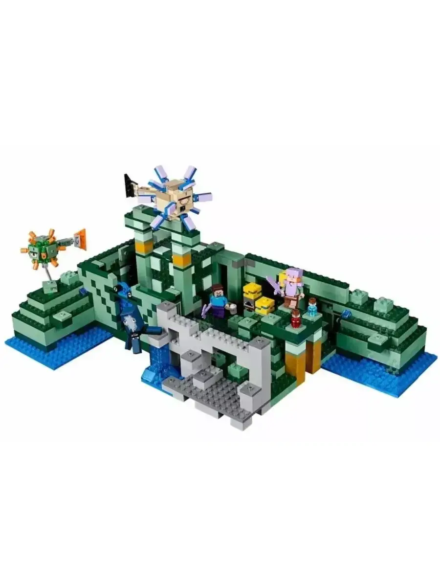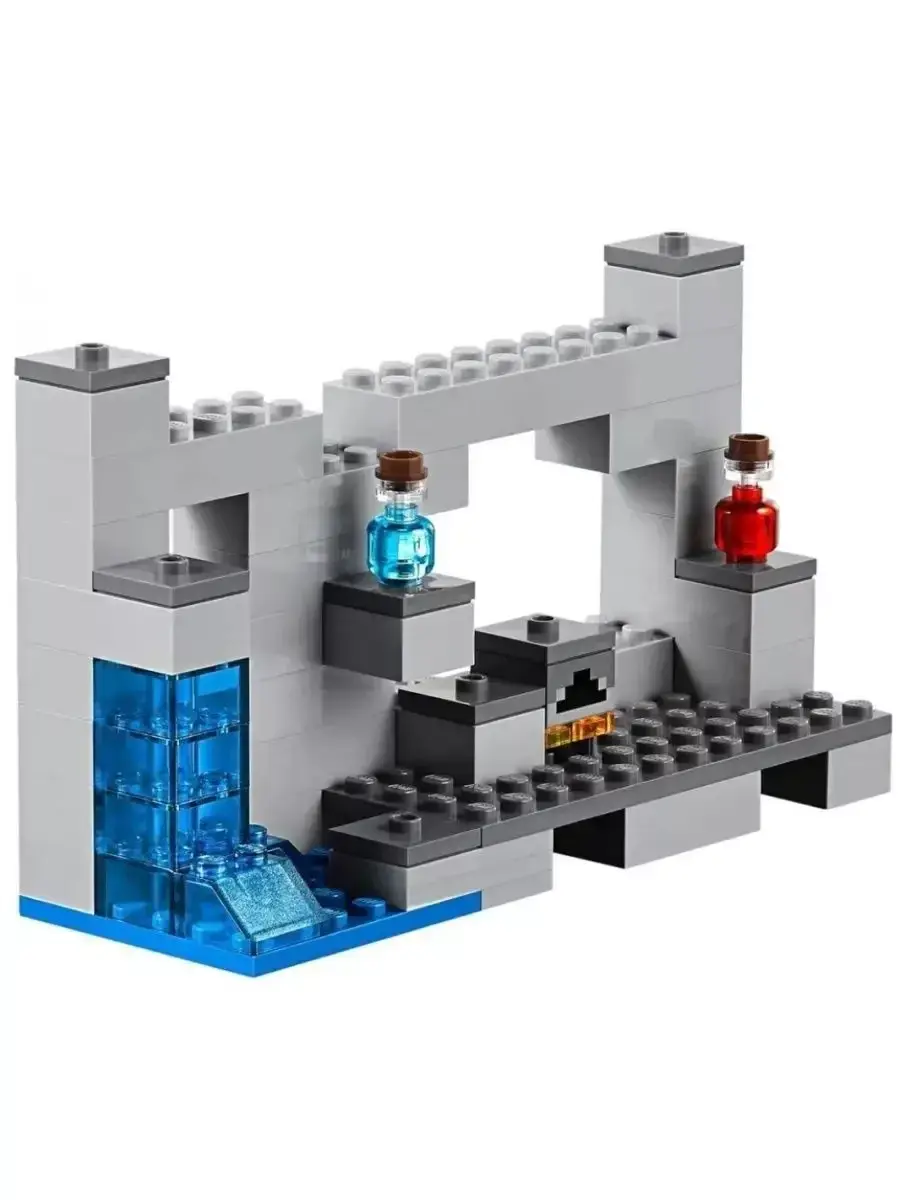 Из деталей набора "Подводная крепость" Вы сможете собрать масштабную модель подводного сооружения. Её корпус напоминает многоуровневую пирамиду. Центральный вход сделан в виде арочного проёма с массивной потолочной перекладиной. С помощью прозрачной подставки дежурящий Страж может реалистично двигаться и «плавать» вокруг крепости. Его грозным напарником является Древний Страж, способный сражать непрошеных гостей мощным лазером. Справа от входа устроен тайник. Отогнав спрута и подняв часть фасада, можно обнаружить ярко-жёлтую губку. Она необходима для удаления воды из главного зала крепости. Поместите губку над входом и проследите за тем, как струи воды, закрывавшие проход, разойдутся в разные стороны. Благодаря распашной конструкции, стены крепости можно раздвинуть и открыть доступ ко всем помещениям. В центральном зале располагается куб из тёмного Призмарина, украшенный морскими фонарями. В его торце устроен своеобразный противовес. Нажав на него, можно поднять крышку и увидеть, как из куба появятся 8 золотых блоков. Они служат главным сокровищем крепости и по совместительству долгожданной наградой для игрока. Размер пирамиды в собранном виде составляет 15х24х24 см.