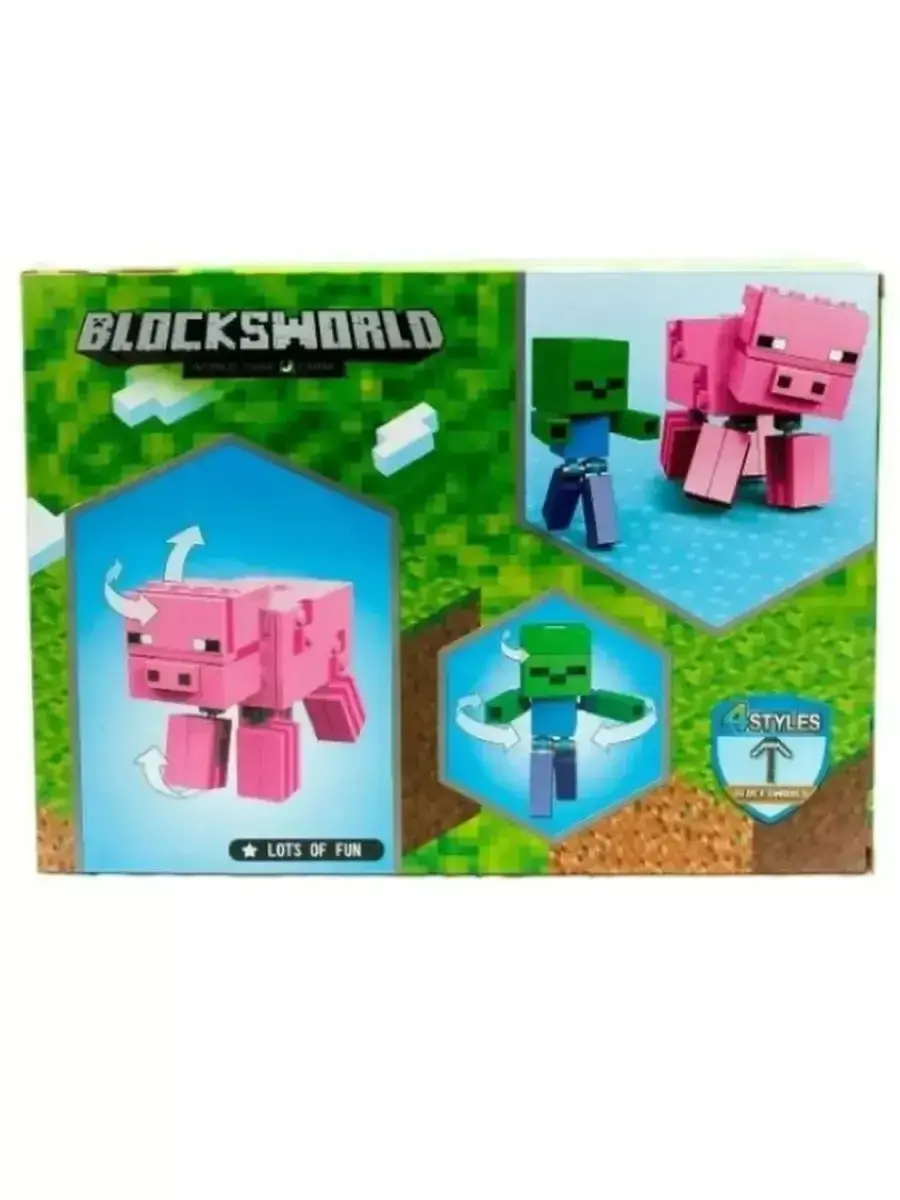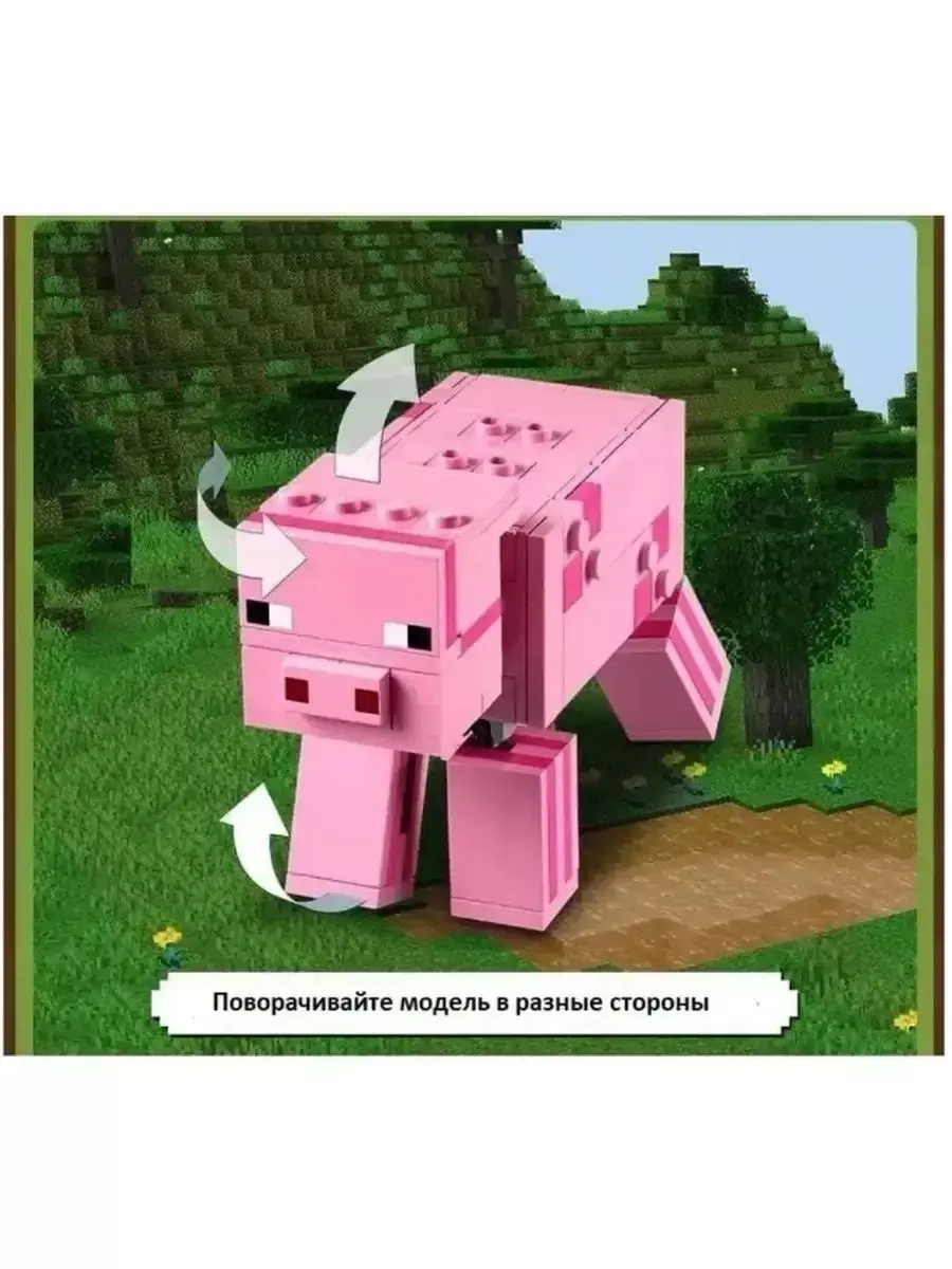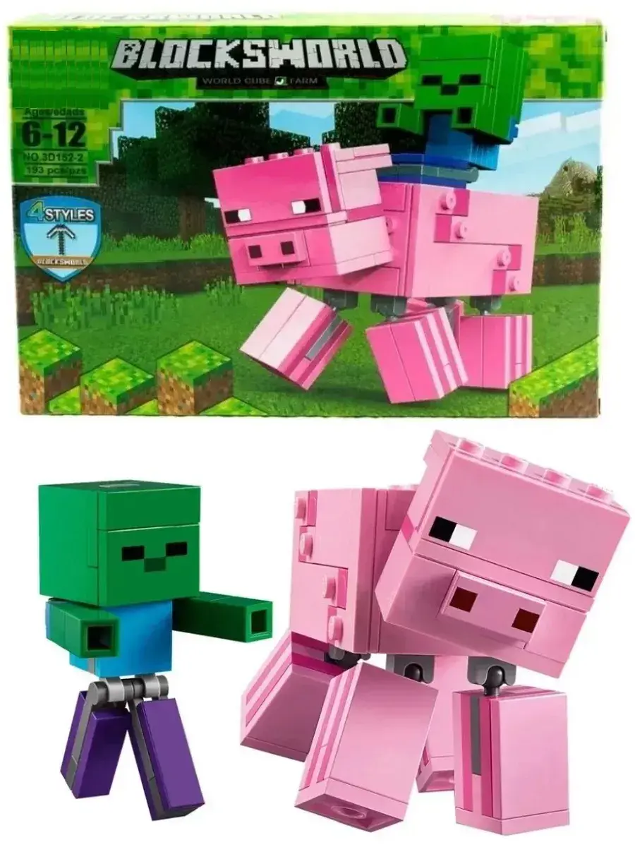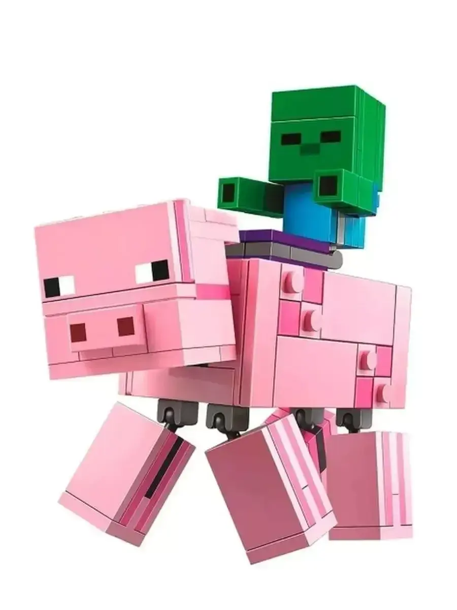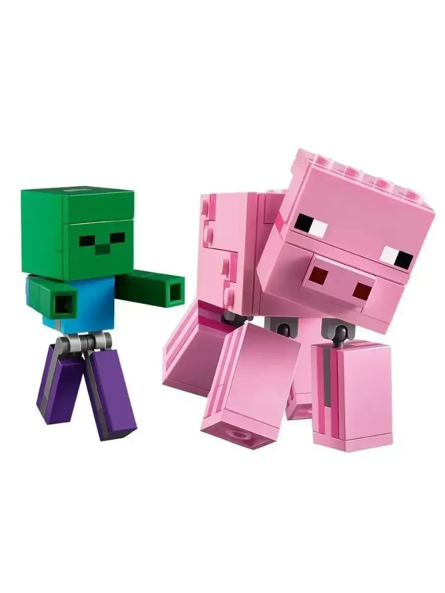 Конструктор "Майнкрафт: Свинья и Зомби" — это компактный, но насыщенный набор из 193 деталей, идеально подходящий для динамичных сцен сражения и приключений в кубическом мире Minecraft. Благодаря продуманной композиции, он позволяет воссоздать противостояние между героем и враждебным мобом на фоне узнаваемого пейзажа.