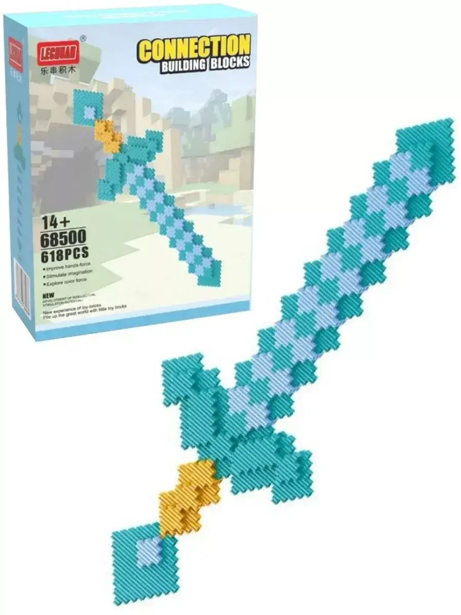 Конструктор пластиковый - это невероятно популярная игрушка для детей. Он состоит из множества маленьких пластиковых деталей, которые можно комбинировать в различные формы и создавать из них различные предметы. Это очень увлекательно и развивает воображение и моторику рук. Конструктор пластиковый состоит из маленьких кубиков, которые легко соединяются между собой. Эти кубики могут быть разного цвета, что позволяет создавать оригинальные и яркие игрушки. Данный набор позволяет создать алмазный меч майнкрафт, что делает его еще более уникальным и интересным для детей. Конструктор состоит из МИНИ блоков, он не совместим с классическим лего. Состоит из 618 деталей.