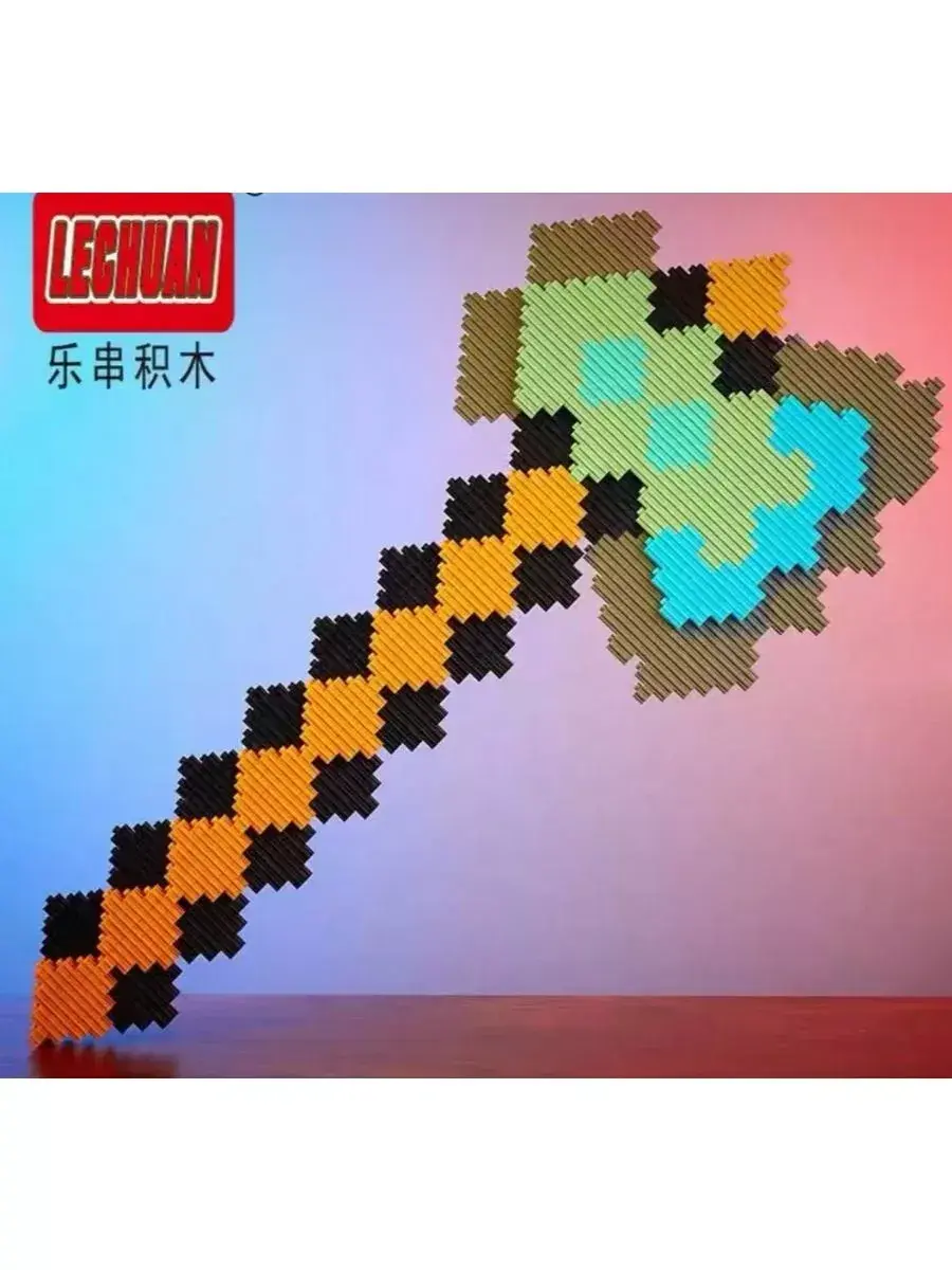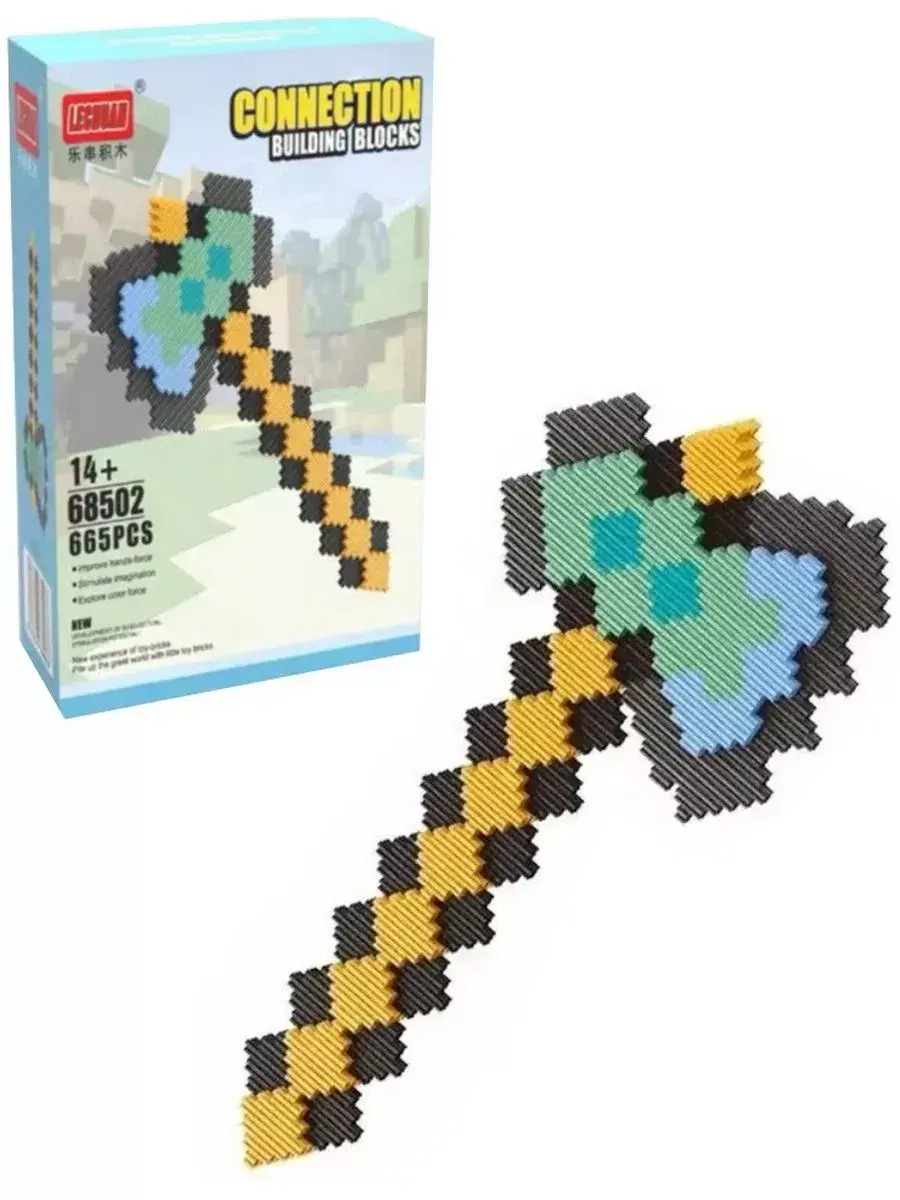 Конструктор пластиковый - это невероятно популярная игрушка для детей. Он состоит из множества маленьких пластиковых деталей, которые можно комбинировать в различные формы и создавать из них различные предметы. Это очень увлекательно и развивает воображение и моторику рук. Конструктор пластиковый состоит из маленьких кубиков, которые легко соединяются между собой. Эти кубики могут быть разного цвета, что позволяет создавать оригинальные и яркие игрушки. Данный набор позволяет создать алмазный топор майнкрафт, что делает его еще более уникальным и интересным для детей. Конструктор состоит из МИНИ блоков, он не совместим с классическим лего. Состоит из 652 деталей.