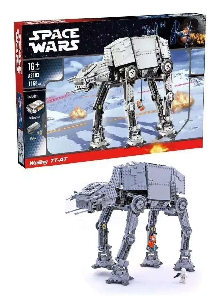 Конструктор Моторизированный шагающий робот AT-AT, представляет из себя набор для сборки точной копии большого четвероногого шагохода АТ-АТ.В разработке конструкции AT-АТ активно принимал участие полковник Максимилиан Вирс, который был лучшим командующим танковыми войсками и за годы службы смог заслужить уважение Дарта Вейдера. Вооружение AT-AТ представляло собой альянс двух тяжёлых турболазерных пушек и четырёх средних бластеров.Главная функция этой машины – перевозка уязвимой техники через поле боя. Внутри модели также есть грузовой отсек для этой цели. Робот использовался на любых планетах, так как его надёжные ноги-опоры позволяли маневрировать по любой поверхности благодаря отличному сцеплению. Также и собранная Вами модель, благодаря системе Power Functions, входящей в комплект, будет свободно передвигаться не только по ровной поверхности, но и по траве и ковру с высоким ворсом. Броня шагохода АТ-АТ являлась самой тяжёлой и крепкой, выдерживала любые удары и прицельный огонь. Голова оснащена лазерными подвижными турелями и открывающейся кабиной. Внутри размещаются две фигурки. Голова реалистично поворачивается при движении.
