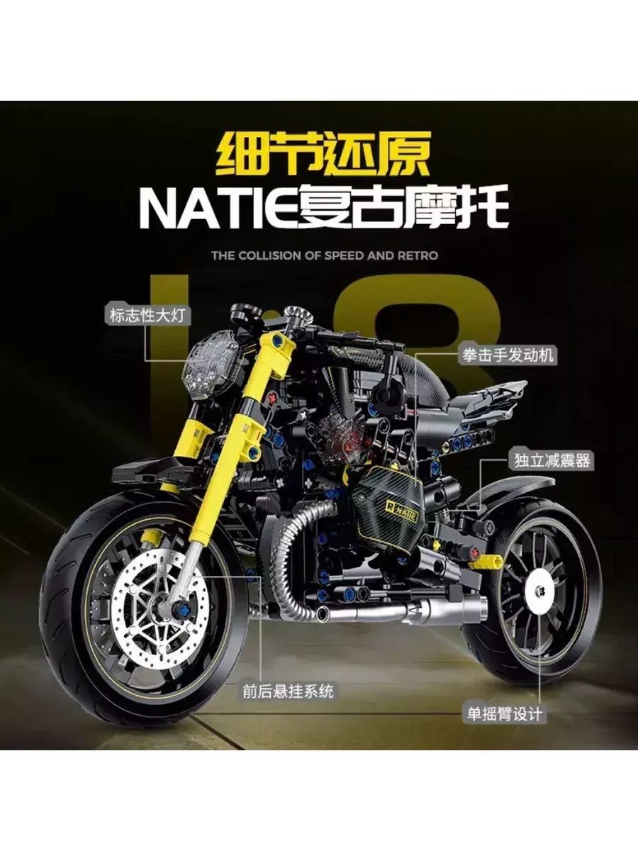 Ощутите всю мощь и стиль современного мотоцикла с конструктором «Мотоцикл Baooma Natie» из 618 деталей! Эта высококачественная модель воссоздает динамичный и элегантный байк, который станет настоящей гордостью вашей коллекции и подарит массу удовольствия от процесса сборки и игры.
